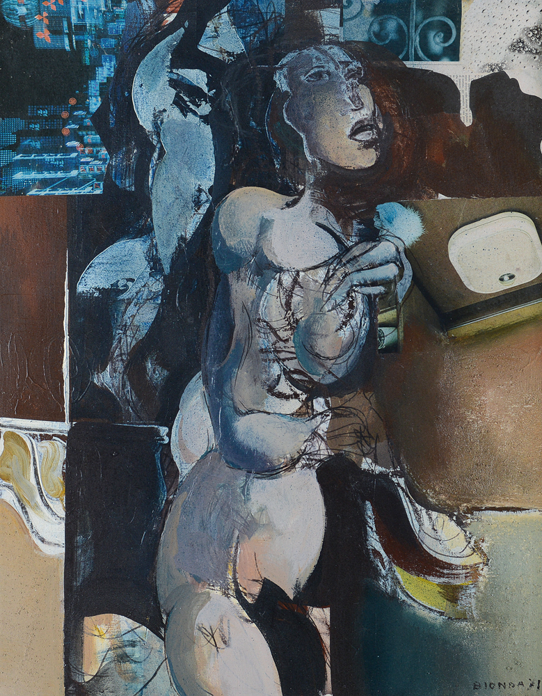 olio e collage su tela cm. 90x70, firma e anno in basso a destra, titolo, firma e anno al retro.