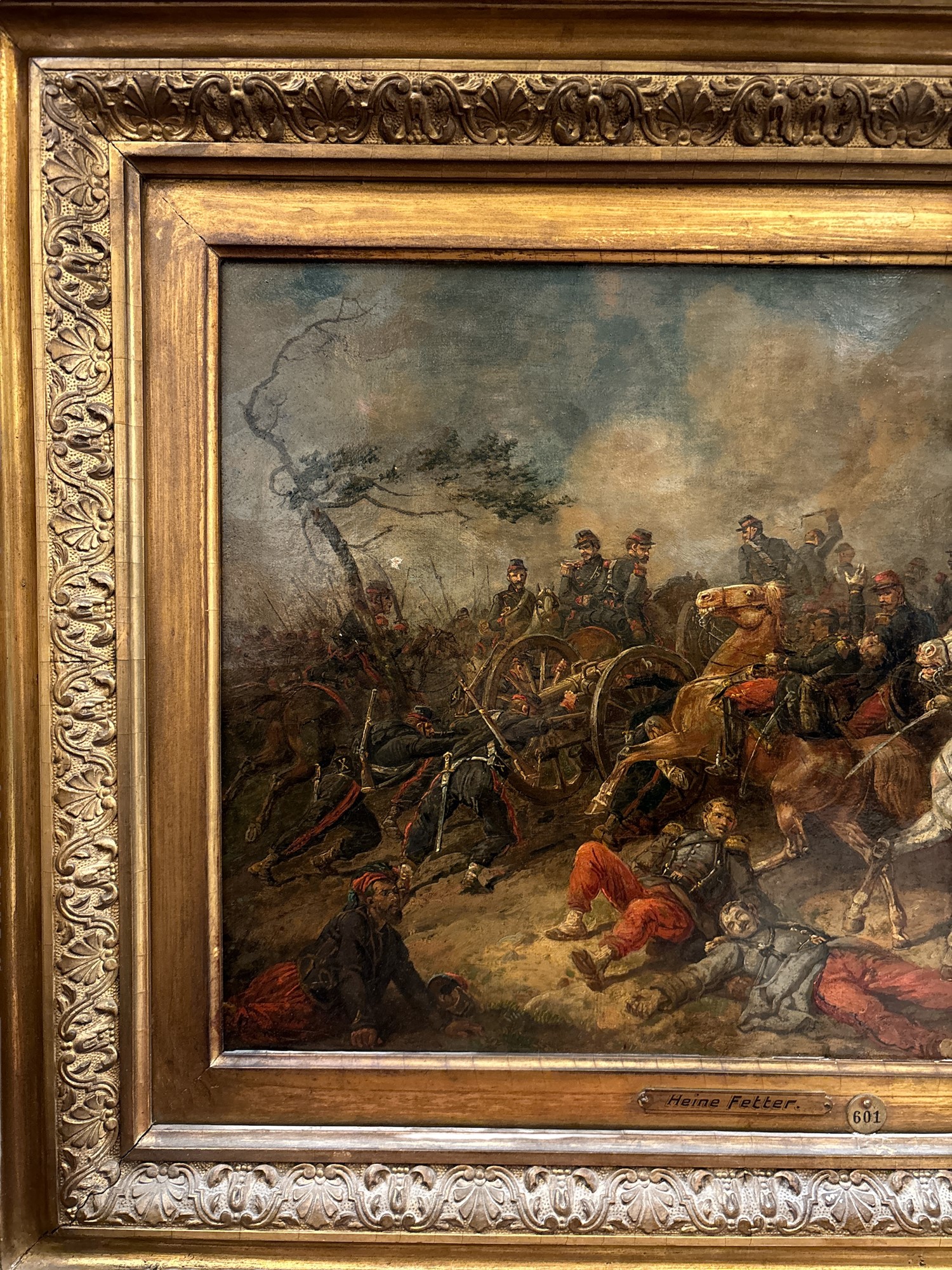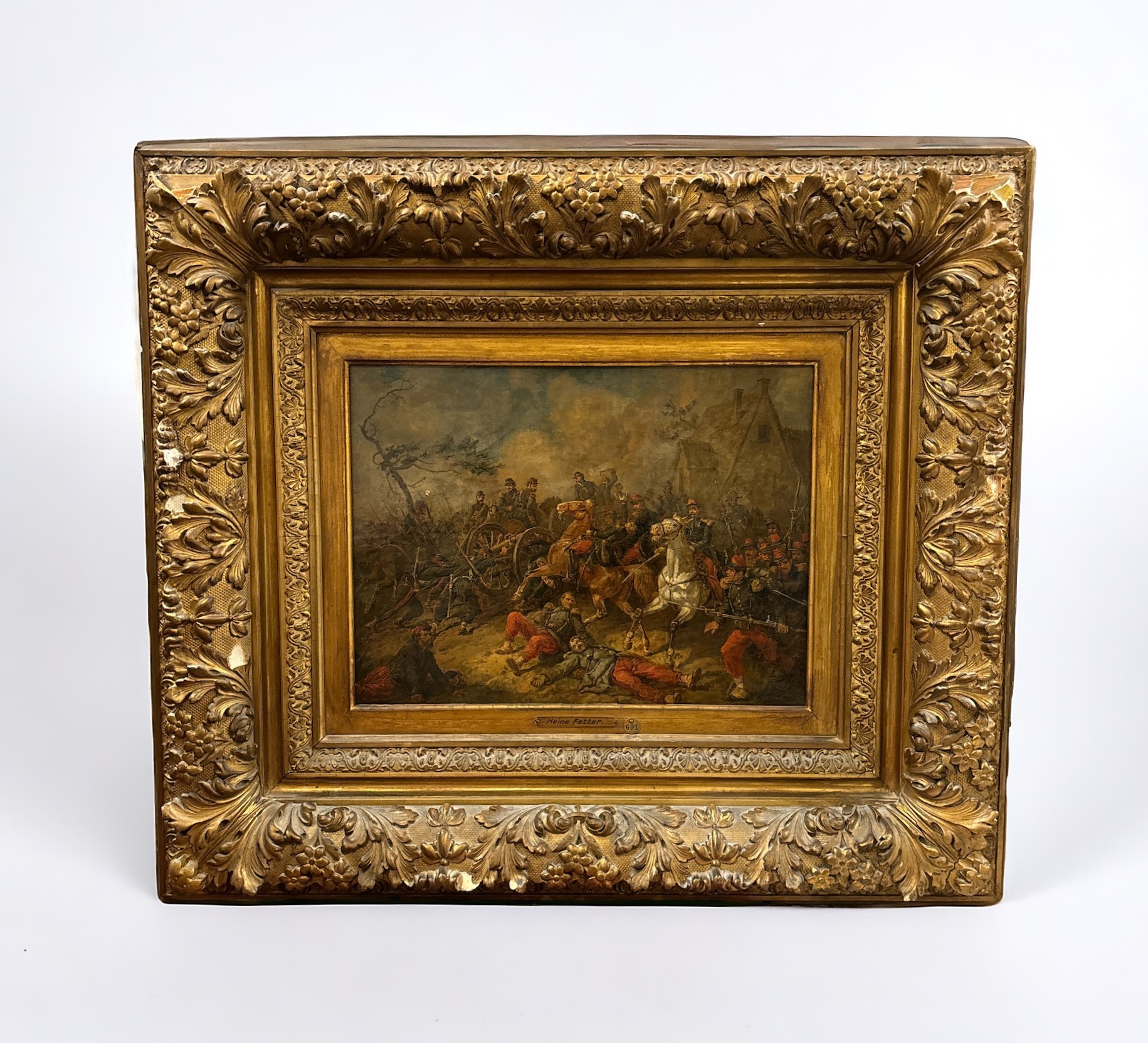 Johann Baptist Heinefetter (1815 - 1902) Scena dalla Guerra Franco - Prussiana olio su tela 32 x43 cm