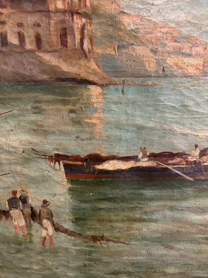 Carmine Acceso (XX secolo - ) Veduta di Napoli da Mergellina olio su tela 40 x 60 cm