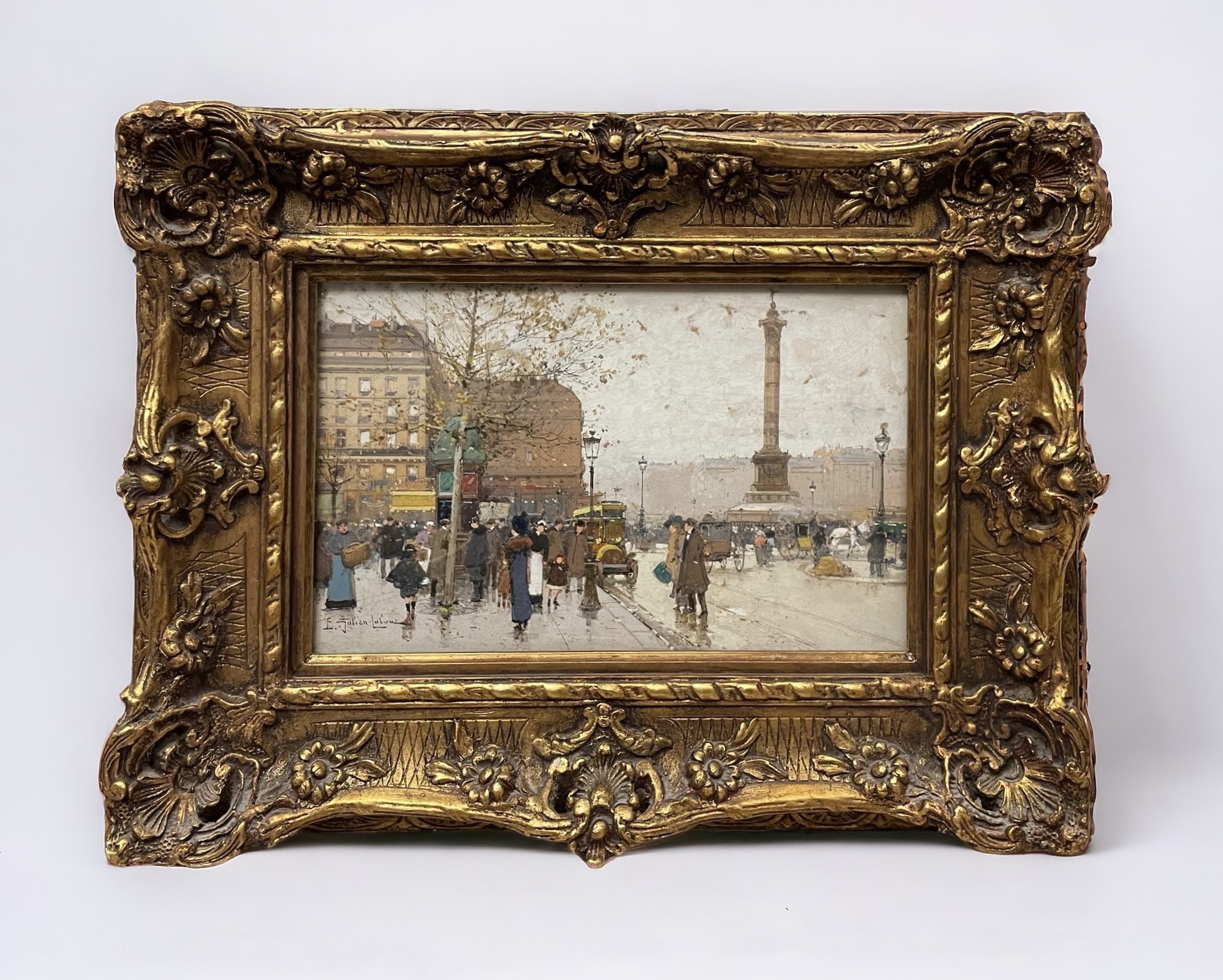 Eugène Galien - Laloue (1854 - 1941) Place de la Bastille tecnica mista su carta 19 x 30,5 cm