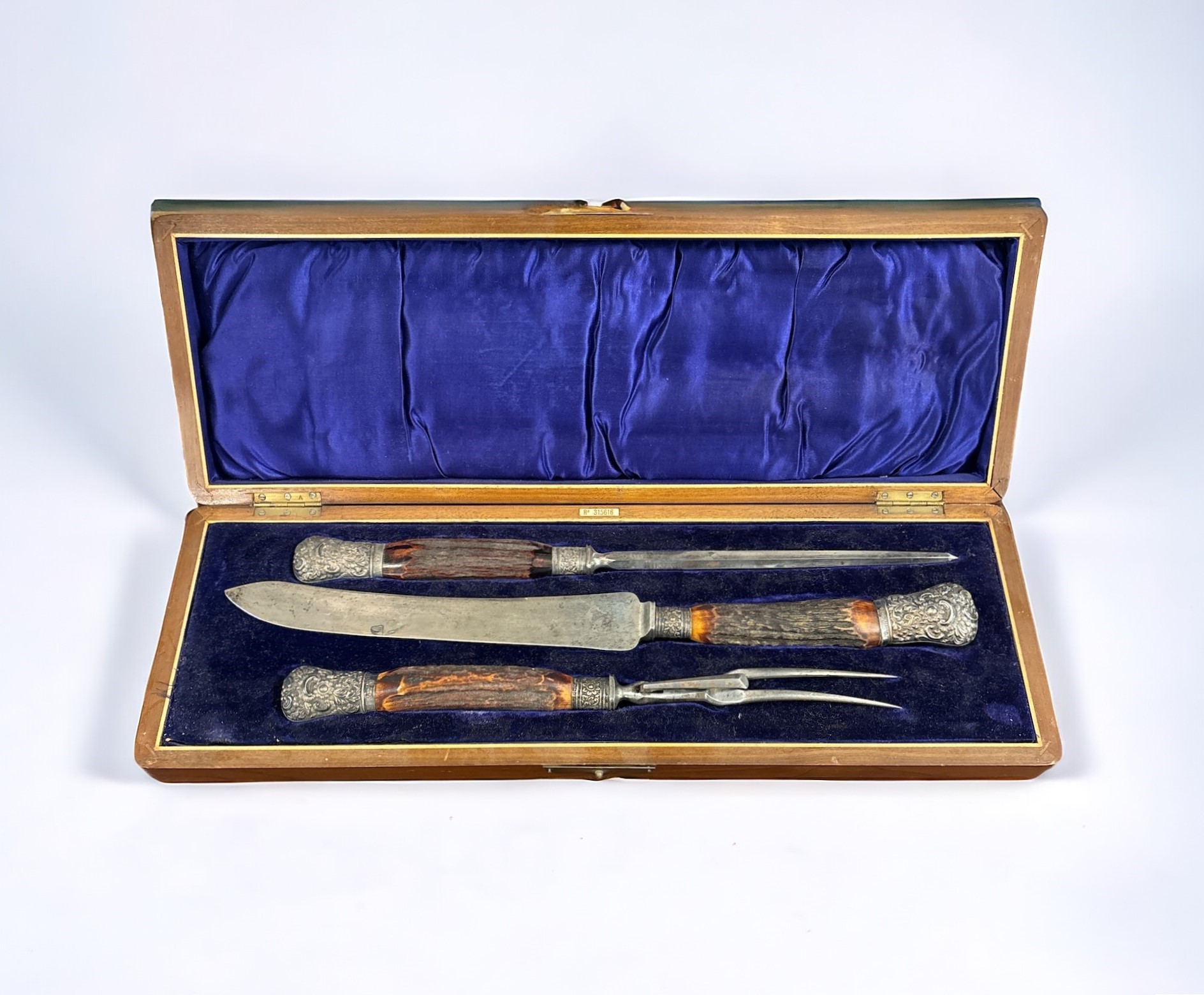 In corno di cervo e Scheffield, con scatola originale. Inghilterra. Coltello: 40 cm.