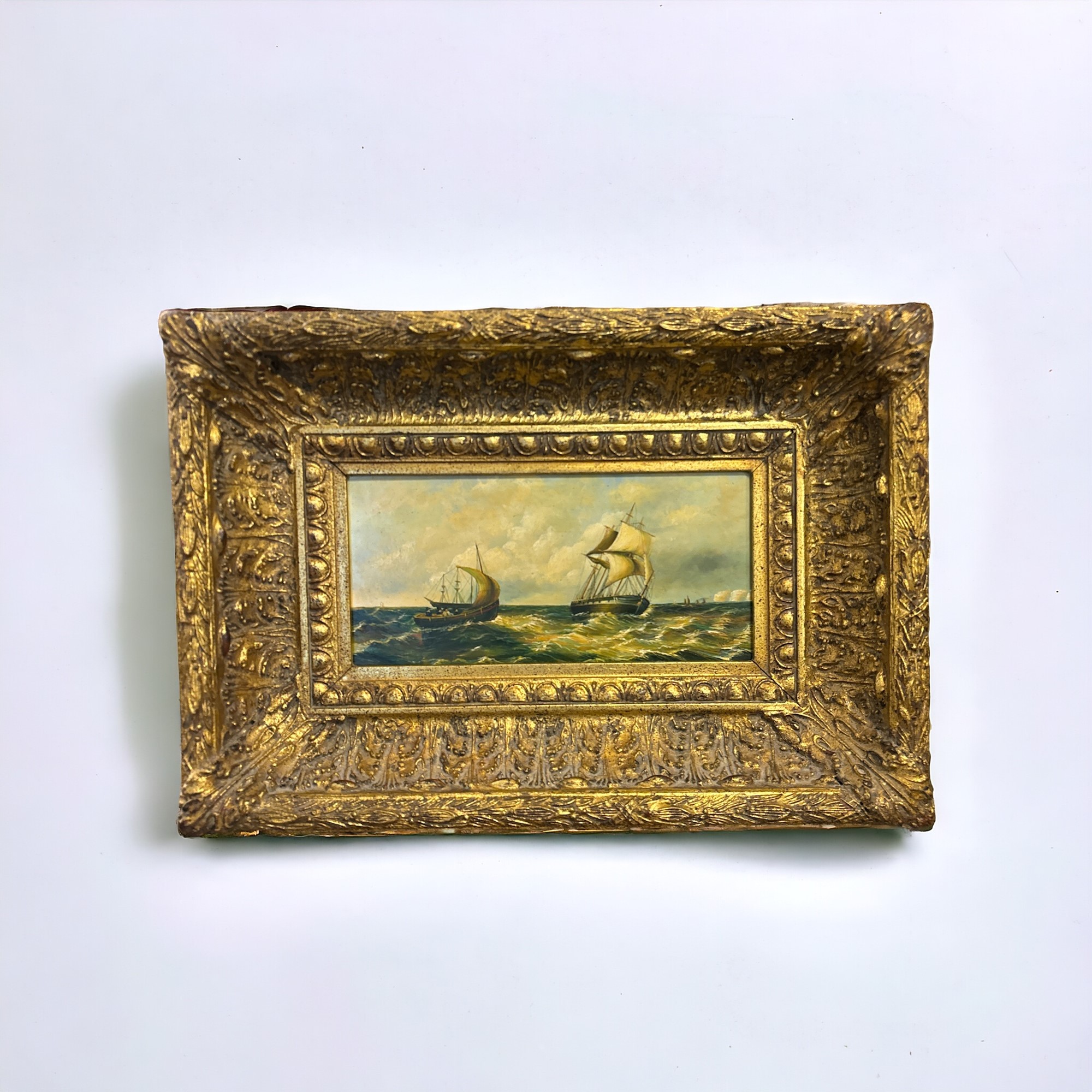 Marina prima metà XX sec. Inghilterra olio su tavola 14 x 29 cm ( 34 x 50 cm con cornice)