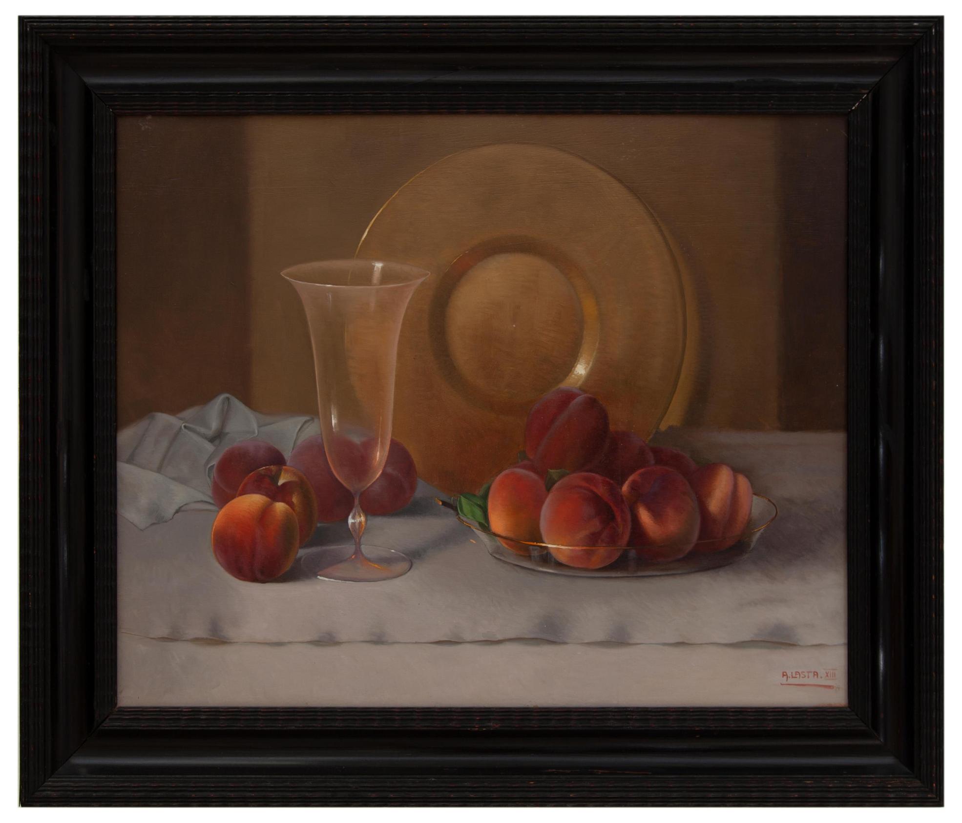 Attilio Lasta Villa Lagarina TN 1886 - 1975 Natura morta con pesche