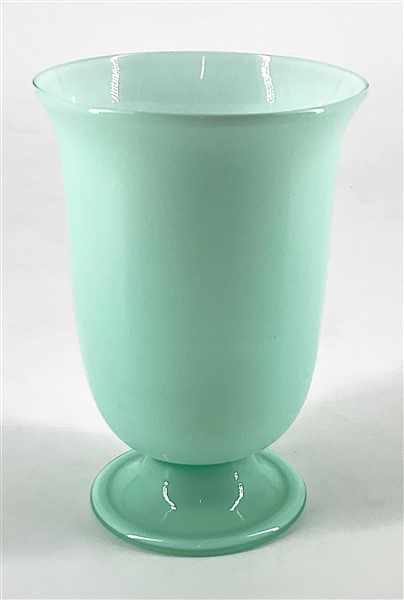 Venini Piccolo vaso con base applicata in vetro incamiciato verde chiaro. Murano