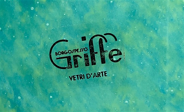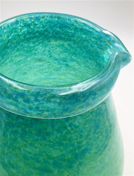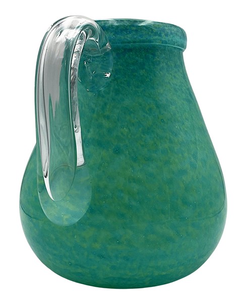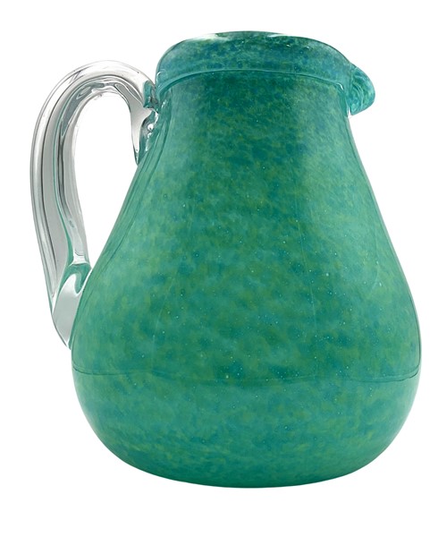 Manifattura italiana Brocca in vetro incolore e marmorizzato verde e giallo. Sec