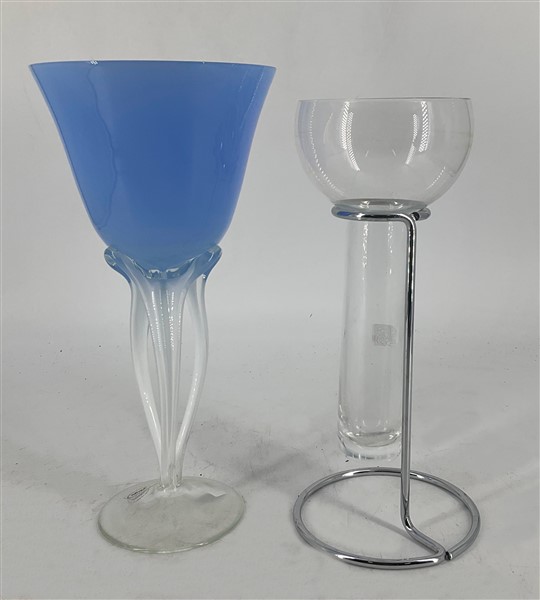 Lotto 2701 | Manifatture differenti. Lotto composto da tre vasi in vetro di forme e decori d