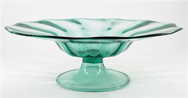 Manifattura di Murano Alzatina costolata in vetro soffiato verdino trasperente.