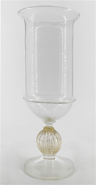 Manifattura di Murano Vaso a calice in vetro incolore con applicazione di foglia
