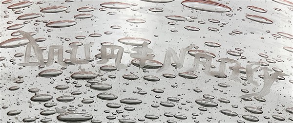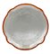Centrotavola a bordo mistilineo in vetro soffiato incolore con inclusione di bolle e bordo applicato in pasta vitrea arancio. Nancy, seconda metà secolo XX. Firmato a punta. (d cm 32) (lievi difetti)