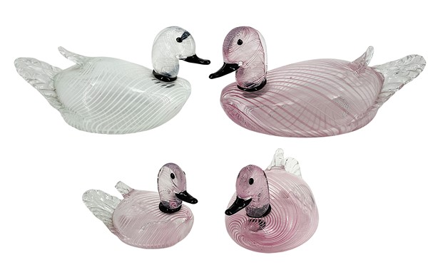 Manifattura di Murano Lotto composto da quattro papere in vetro soffiato incolor