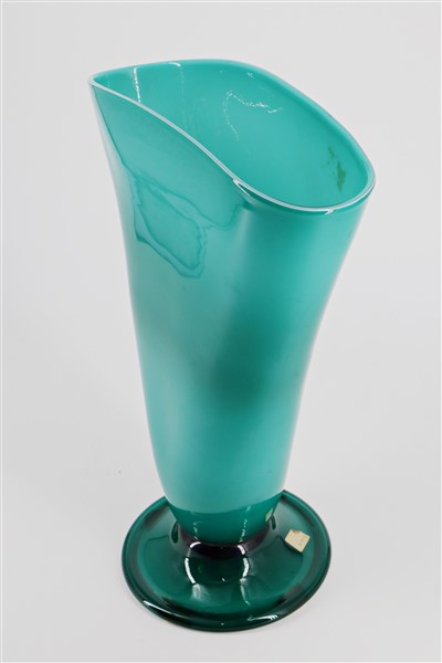 Manifattura di Murano Vaso in vetro soffiato incamiciato verde con corpo a sezio