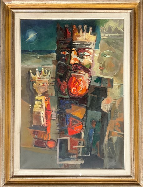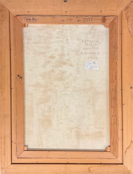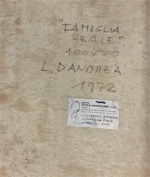 Lorenzo D'Andrea "Famiglia reale" 1972 olio su tela cm 100x70 firmato e datato i