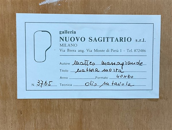 Galleria Nuovo Sagittario, Milano (etichetta al retro); collezione privata, Milano