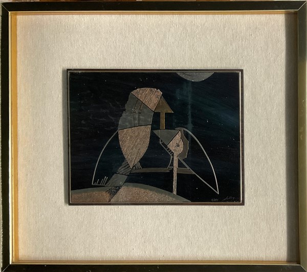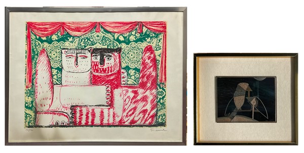 Lotto composto da una litografia a colori di Salvatore Fiume e un multiplo su lastra metallica di Gianni Dova, di soggetto e misure diverse