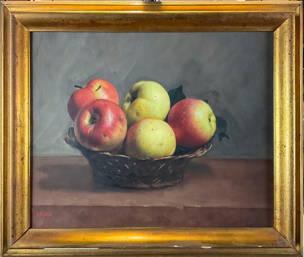 Lotto 2191 | Donnino Pozzi "Natura morta con mele" olio su compensato cm 37x46 firmato in ba