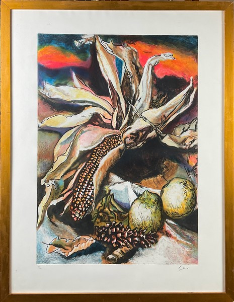 Renato Guttuso "Natura morta" acquaforte e acquatinta a colori (lastra cm 69x48