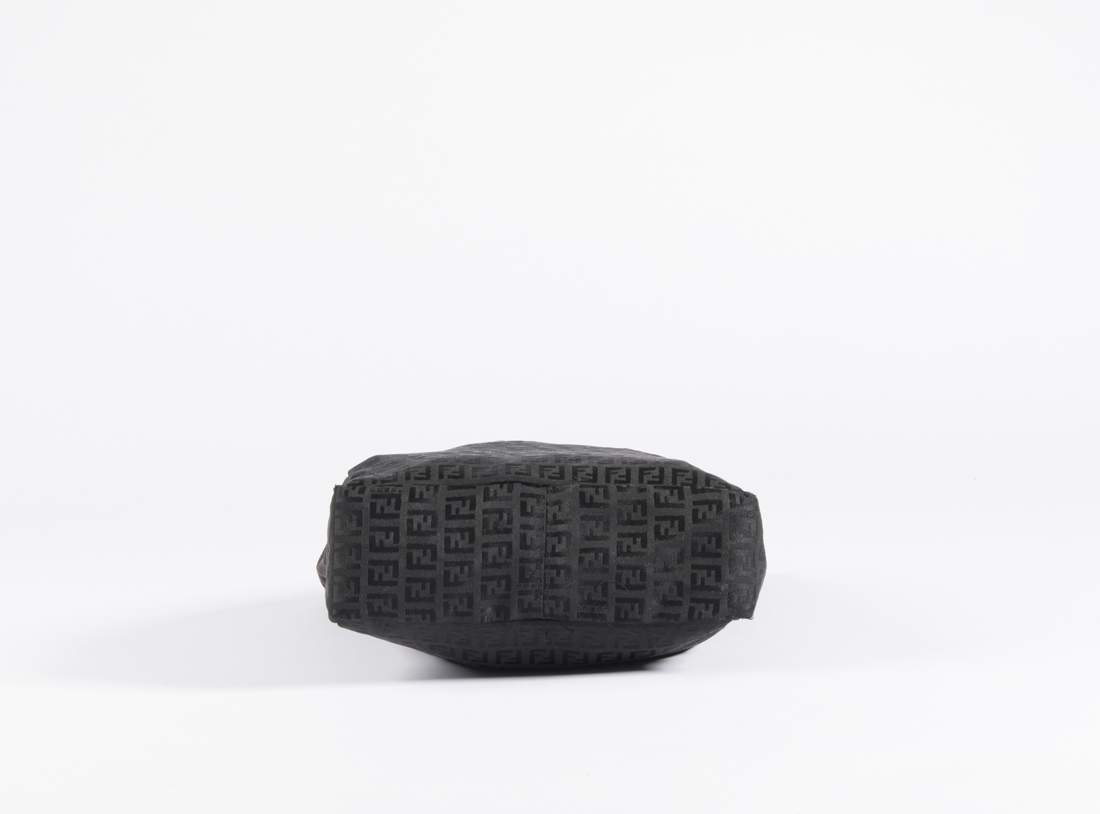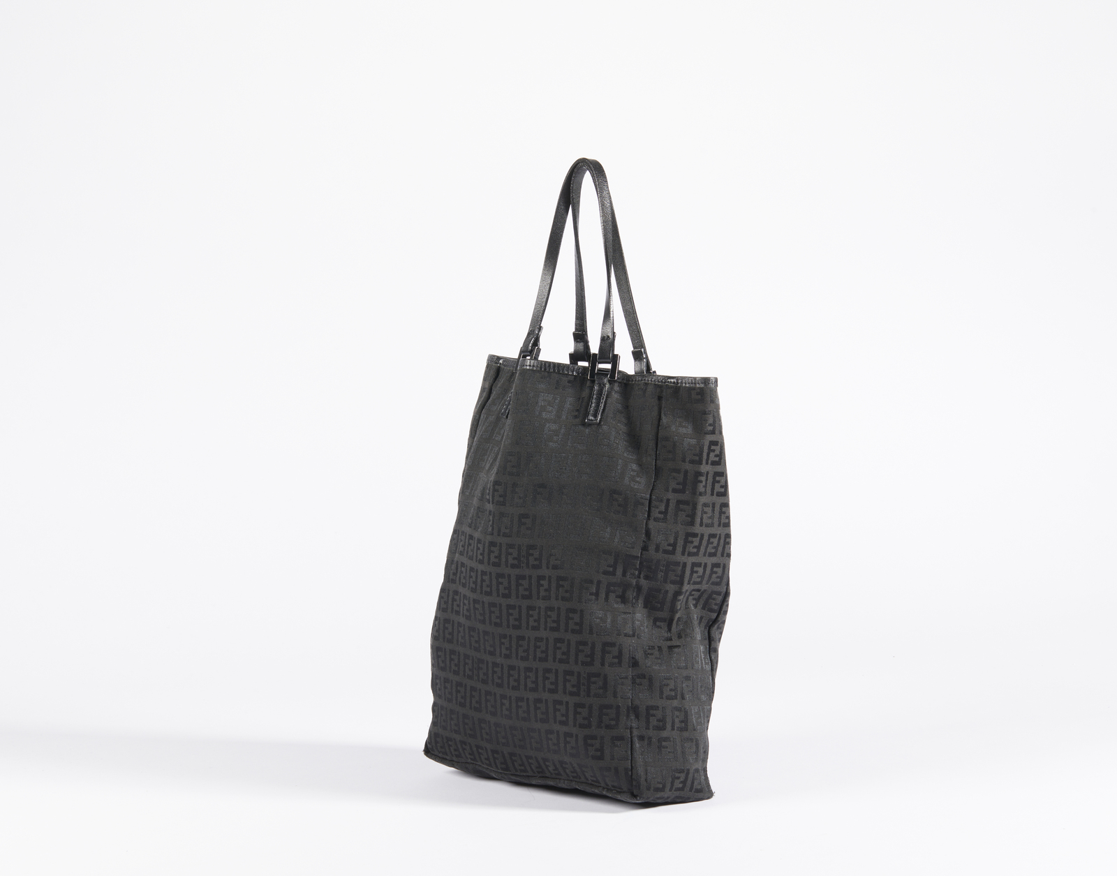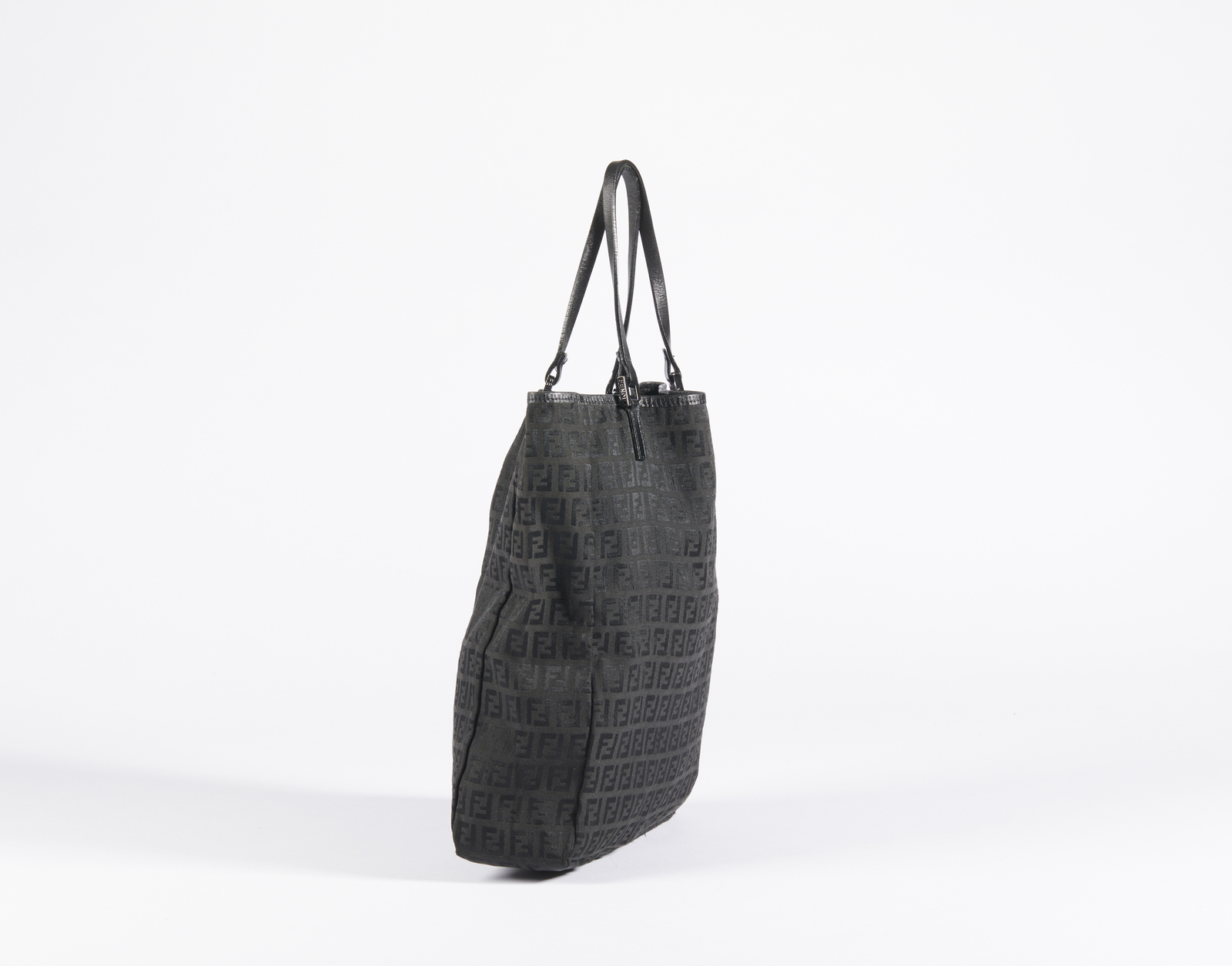 FENDI Borsa nera shopping. Tessuto. Cm 23,00 x 31,00 x 8,00. Borsa tessuto Fendi con pochette. Logo interno, manici in pelle. Hardware color argento.