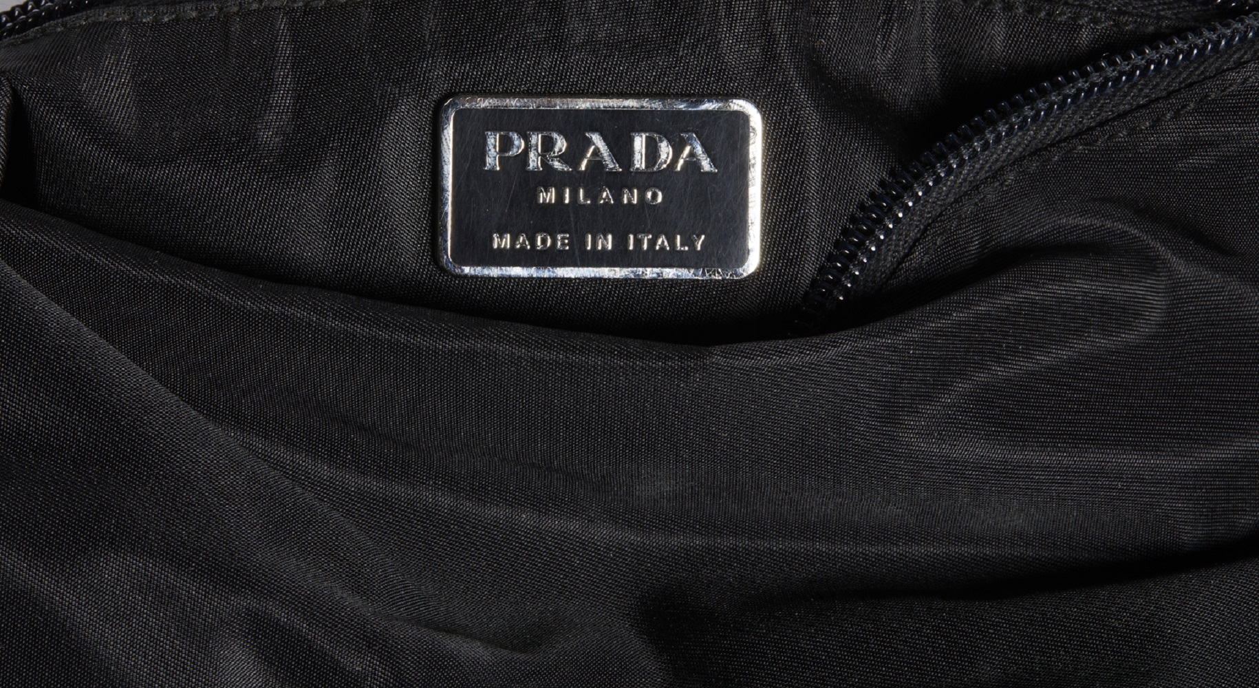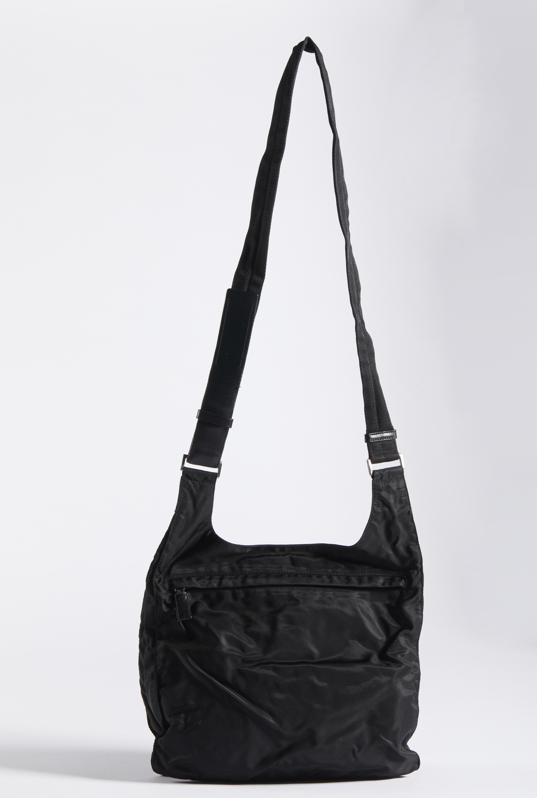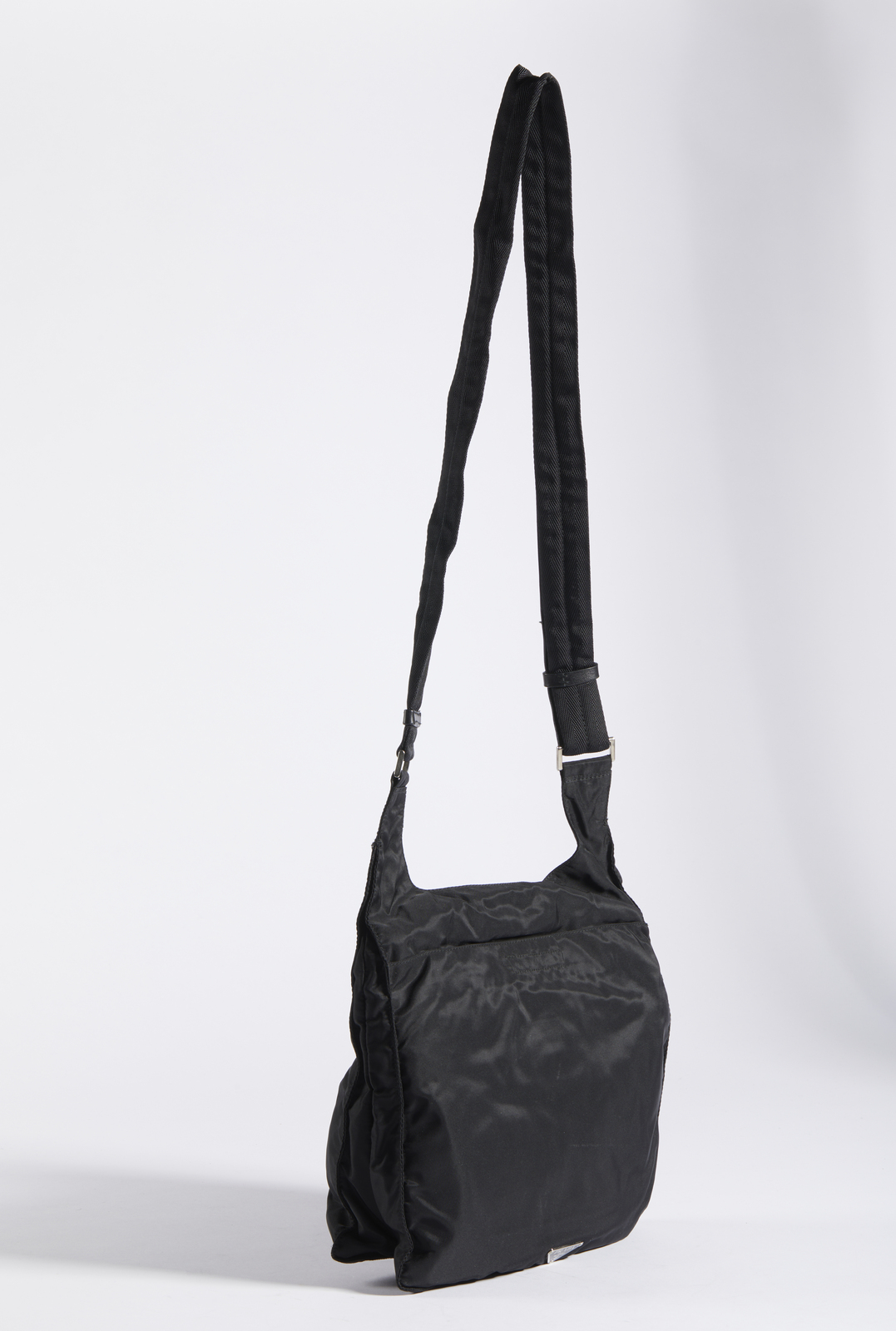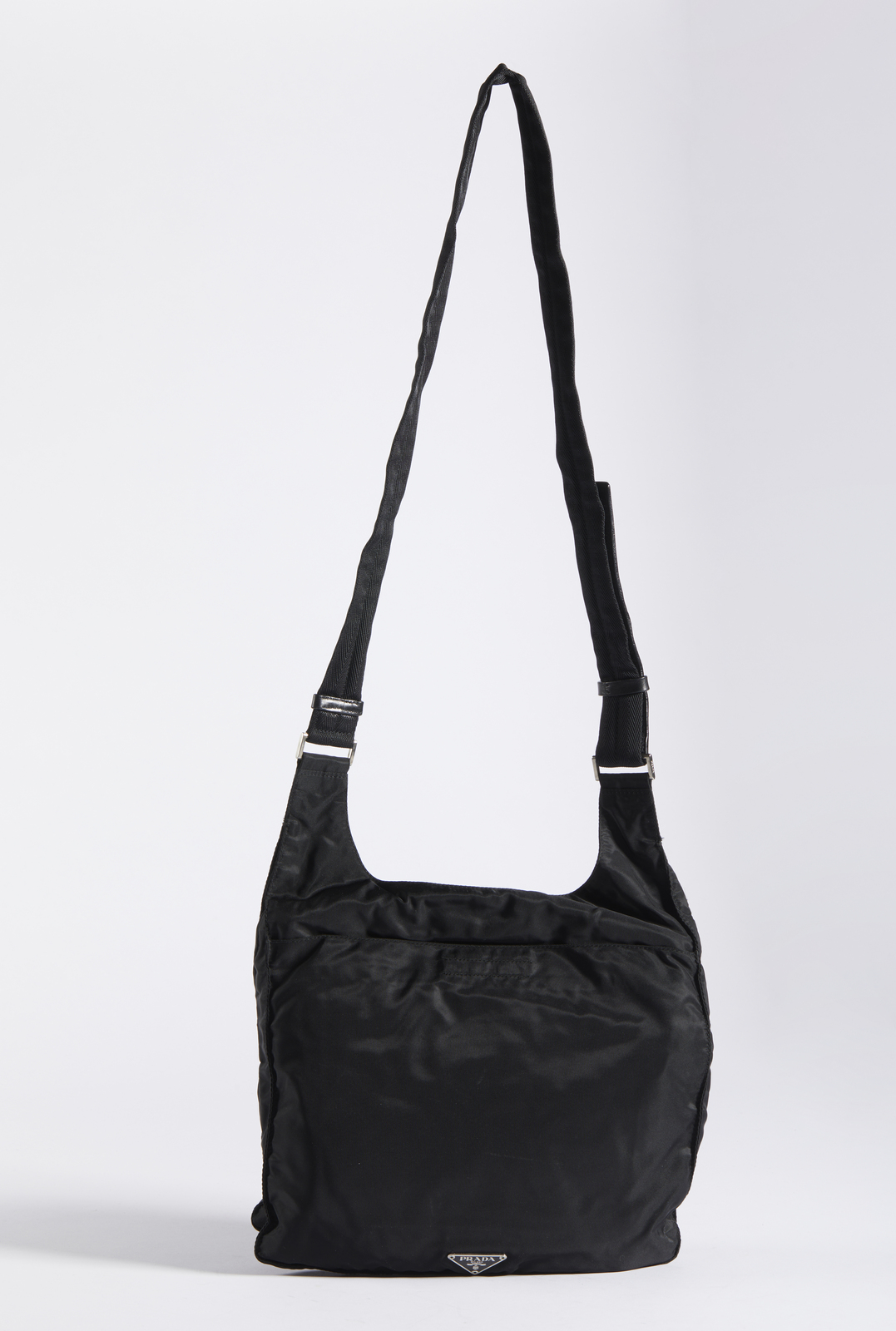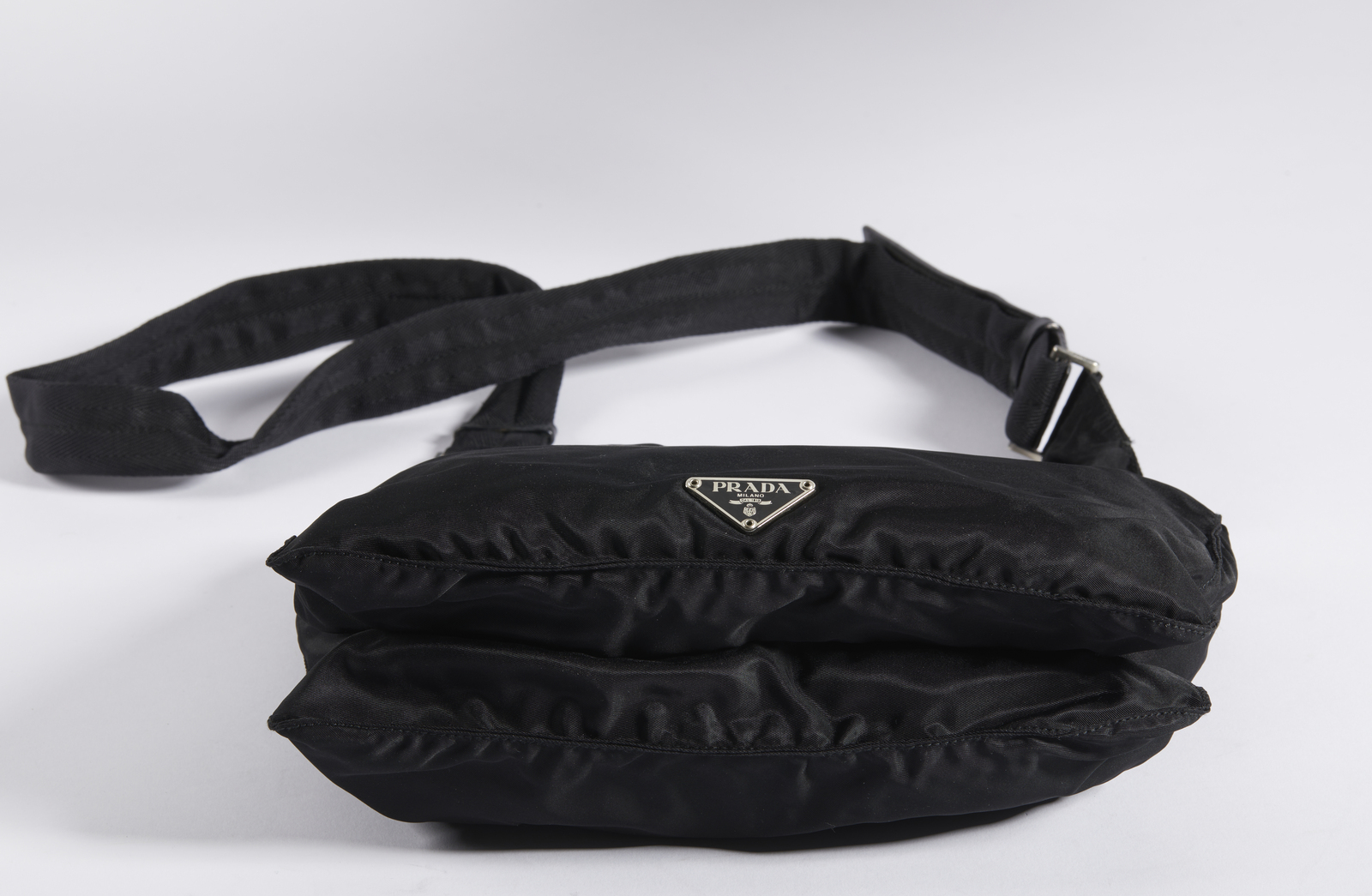 PRADA MILANO - Borsa in tessuto nero con tracolla.