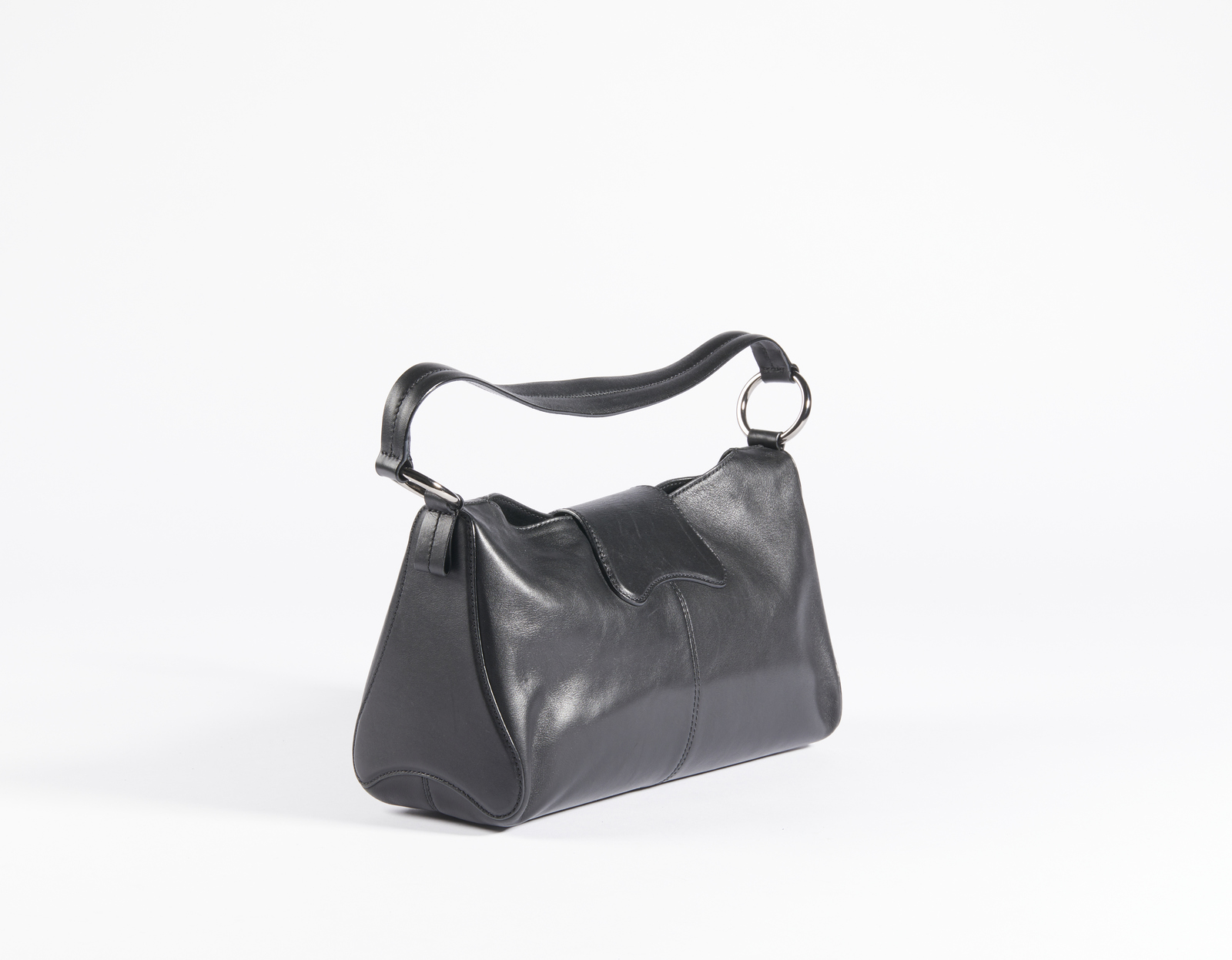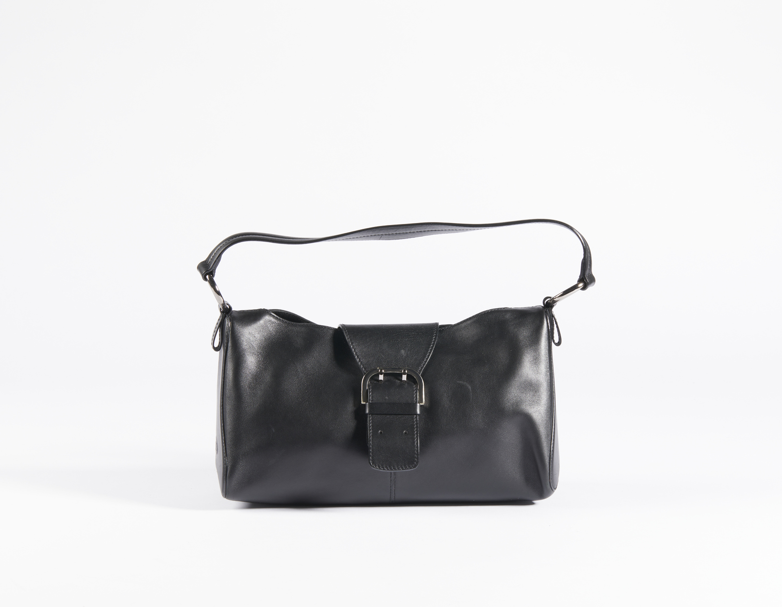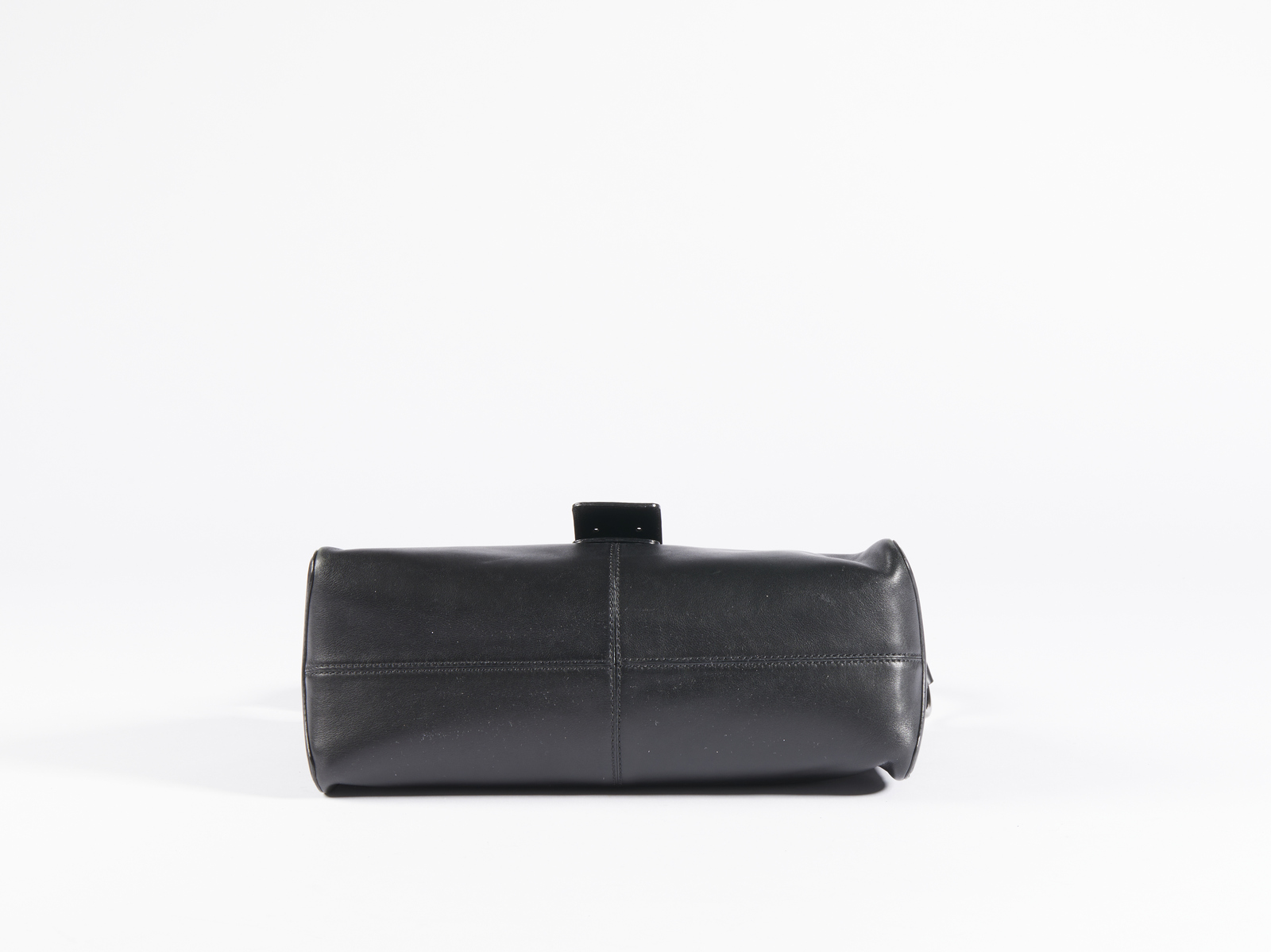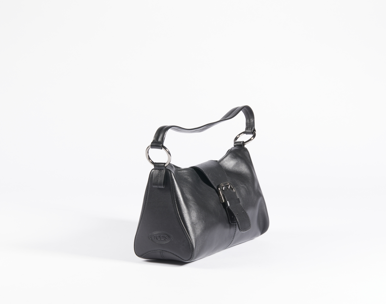 TOD'S Borsa in pelle nera. Pelle. Cm 30,50 x 17,00 x 12,00. Borsa a mano in pelle nera con chiusura a calamita. Tasca interna con zip. Hardware argentato. lievi difetti.