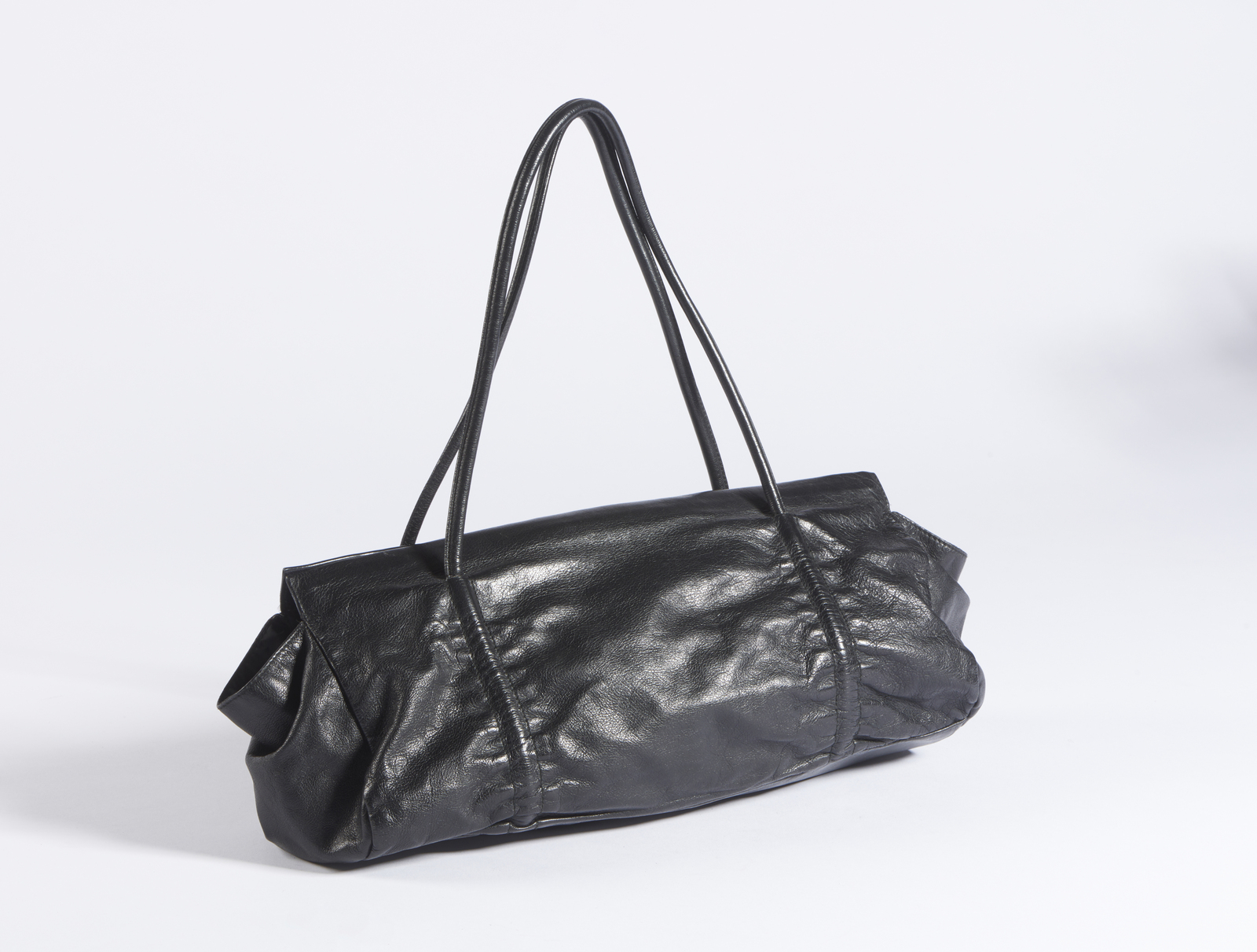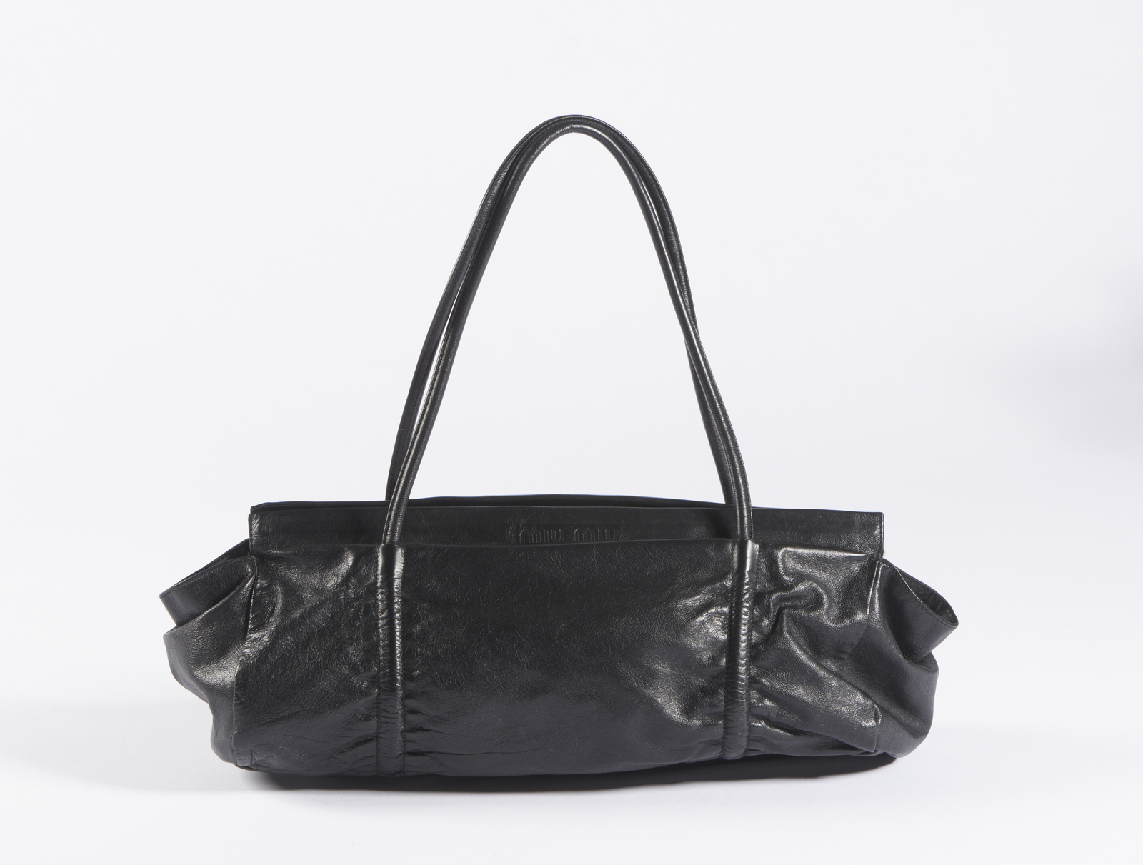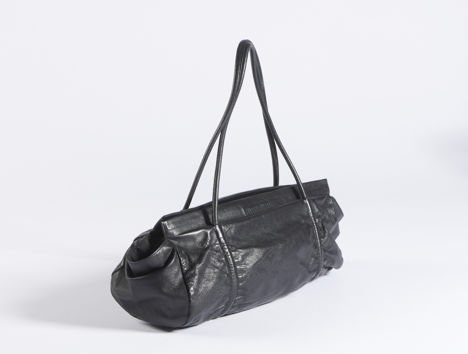 MIU MIU Borsa a mano nera. Pelle. Cm 37,00 x 19,00 x 12,00. Borsa a mano con logo al fronte impresso. Interno foderata in Nylon con logo. Una taschina porta carte all'interno. Chiusura con bottoni. Lunghezza dei manici 22cm.