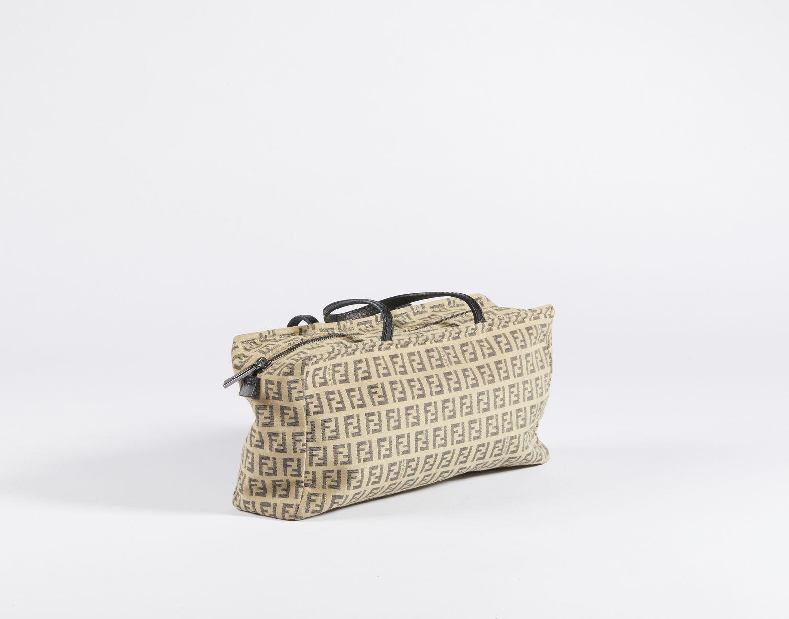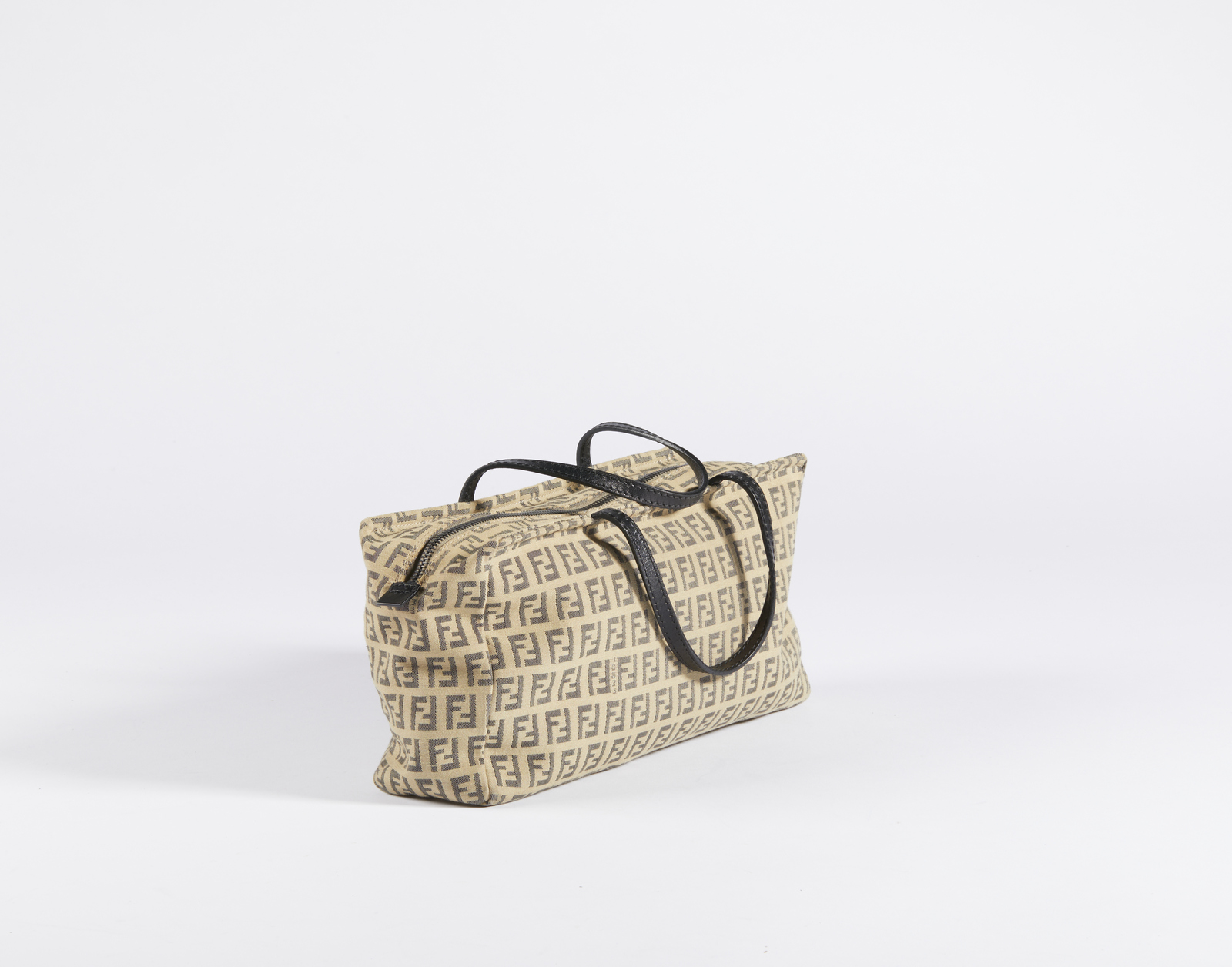 FENDI Borsa a mano in tessuto Zucca. . Cm 30,00 x 14,00 x 7,00. Borsa a mano in tessuto Zucca con piccola tasca interna. Chiusura con zip. Manici in pelle.