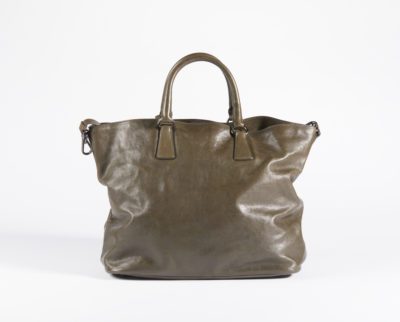 PRADA MILANO Borsa Prada in pelle color fango. Pelle. Cm 37,00 x 30,00 x 18,00. Borsa in pelle color fango a mano e dotata di tracolla. Hardware è in color argento brunito. L'interno in raso con logo Prada. Internamente sono presenti due grandi tasche con lampo e tre tasche portaoggetti, è presente il logo Prada internamente.