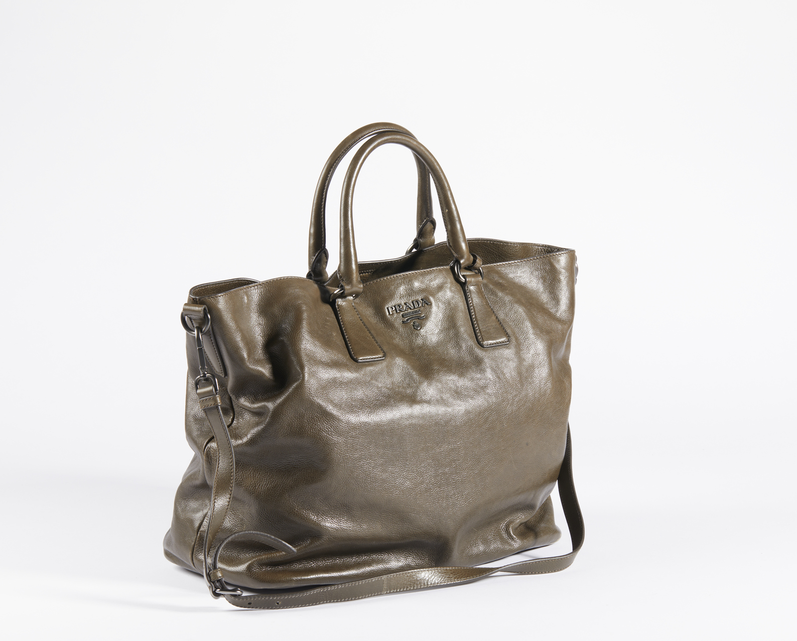 PRADA MILANO - Borsa Prada in pelle color fango.