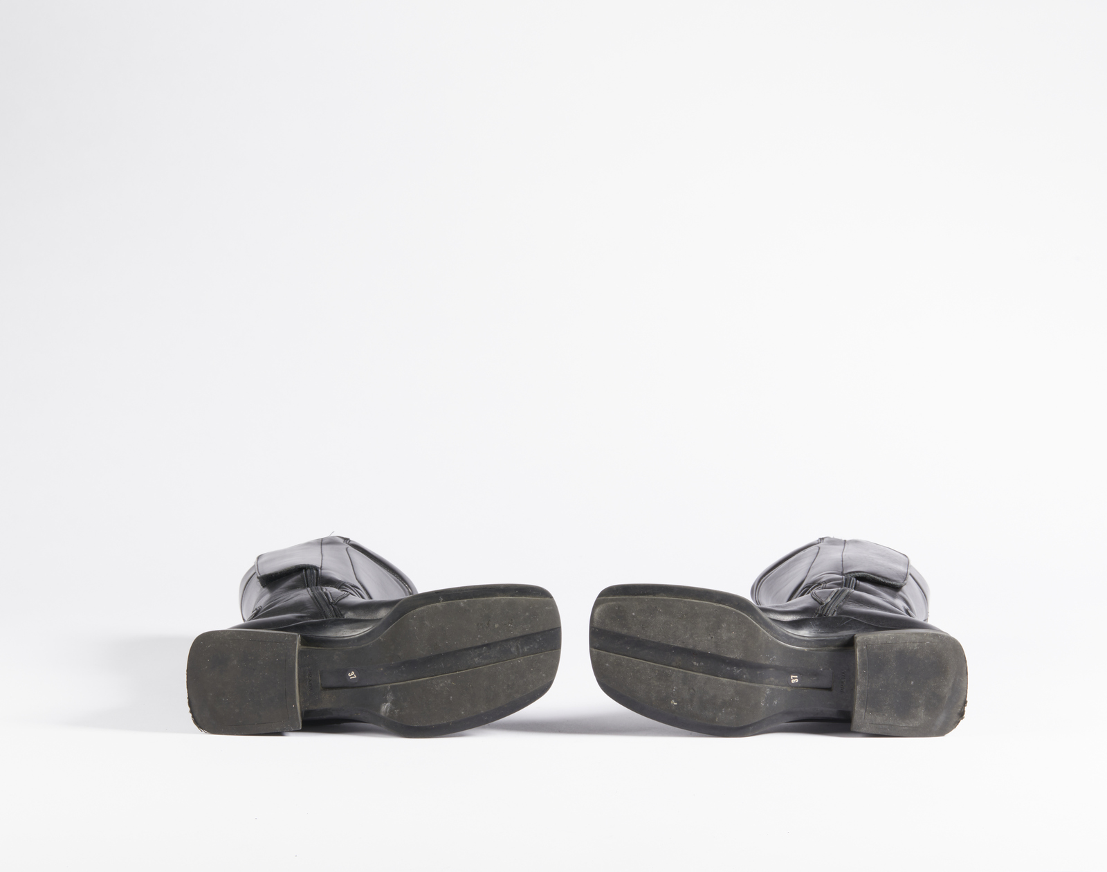 PRADA MILANO Stivaletti in nappa nera. Pelle. Cm 25,50 x 27,00. Stivaletti di nappa neri in ottime condizioni. Numero 37. Punta quadrata, leggermente imbottito, tacco di 3 cm, suola in gomma.