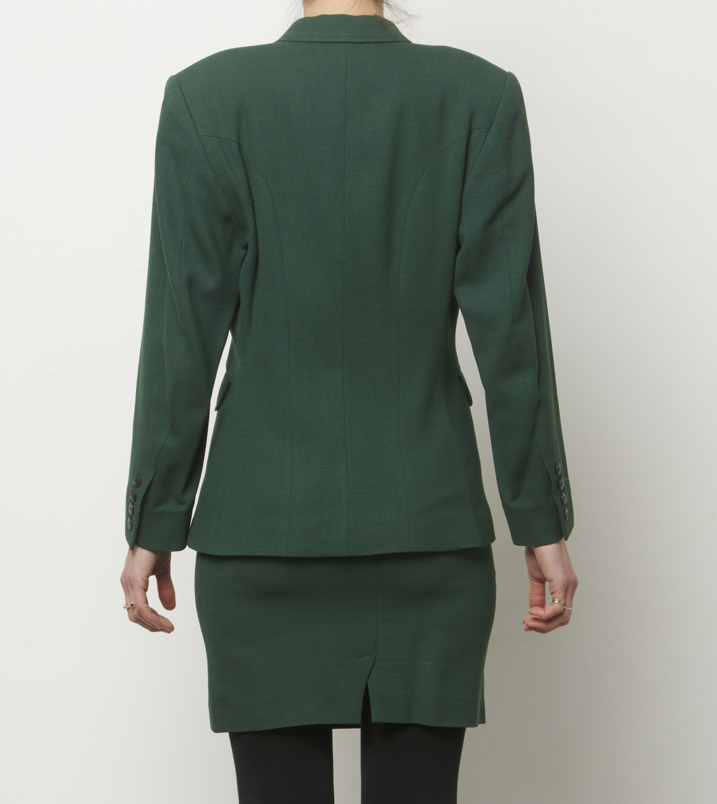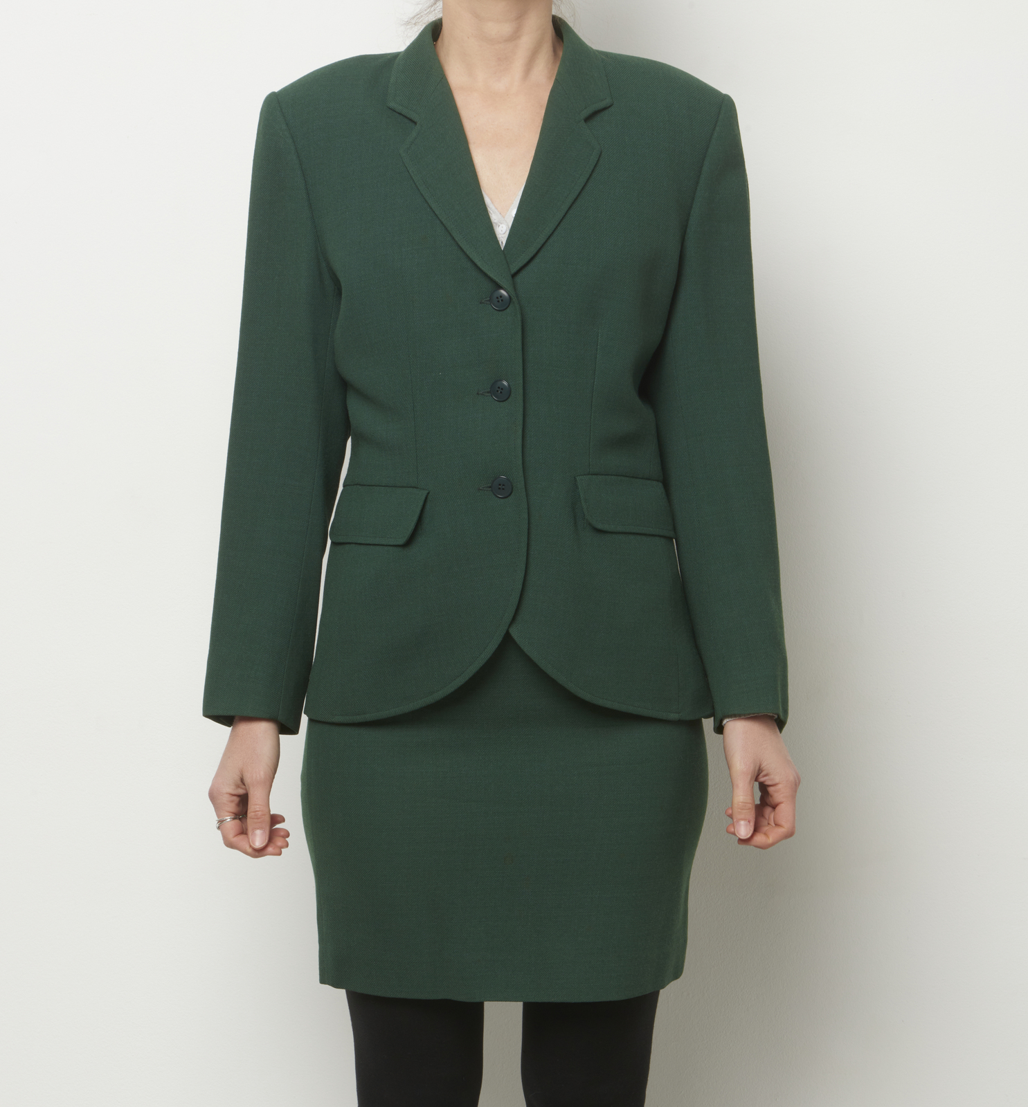 KENZO Tailleur verde. Lana.. . Tailleur Verde, composto da giacca e gonna. Taglia 36It. La modella indossa abitualmente una taglia 38IT.