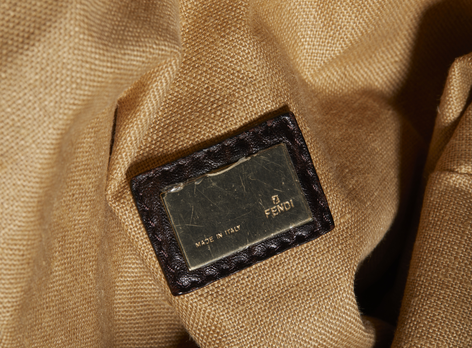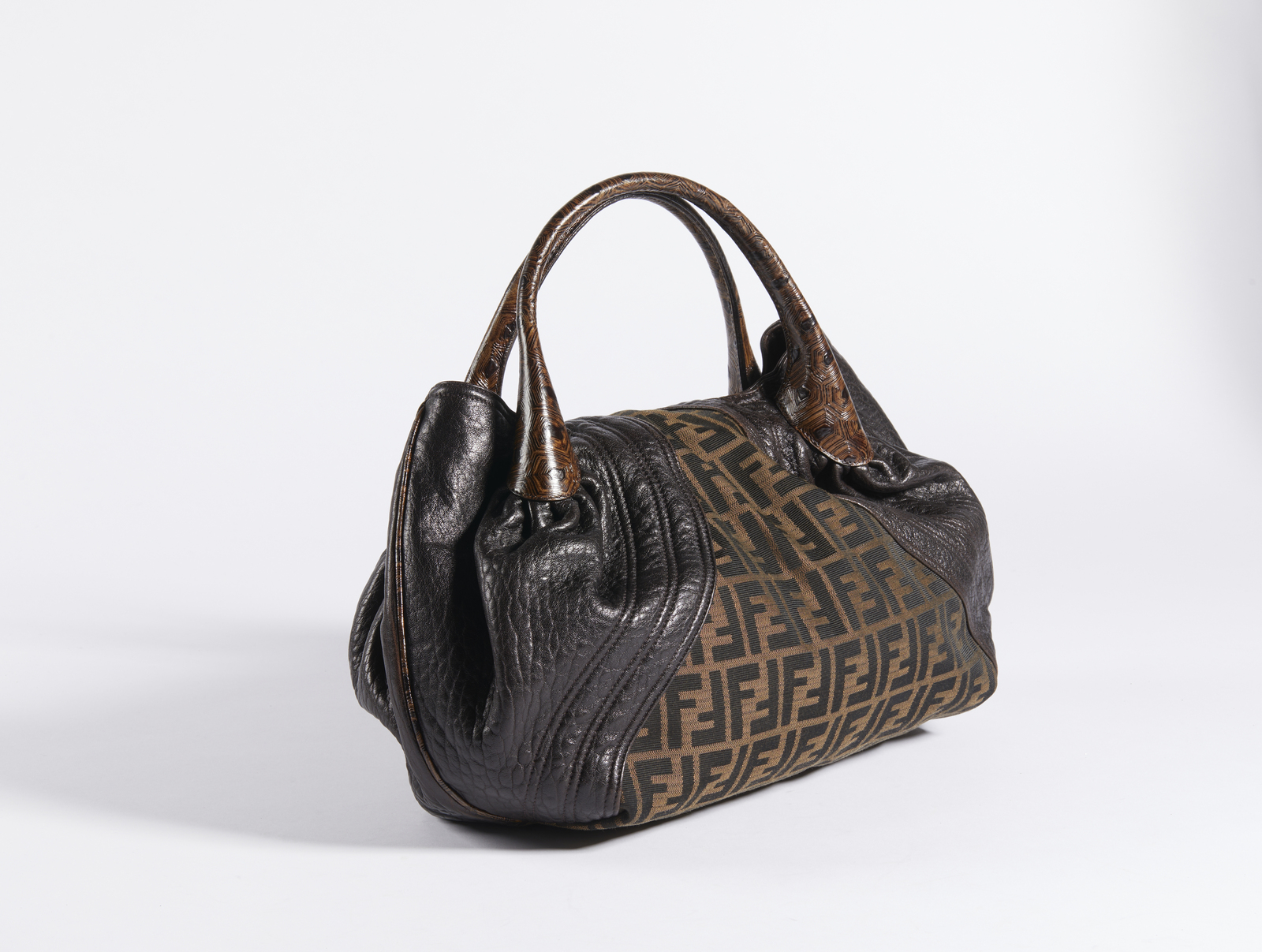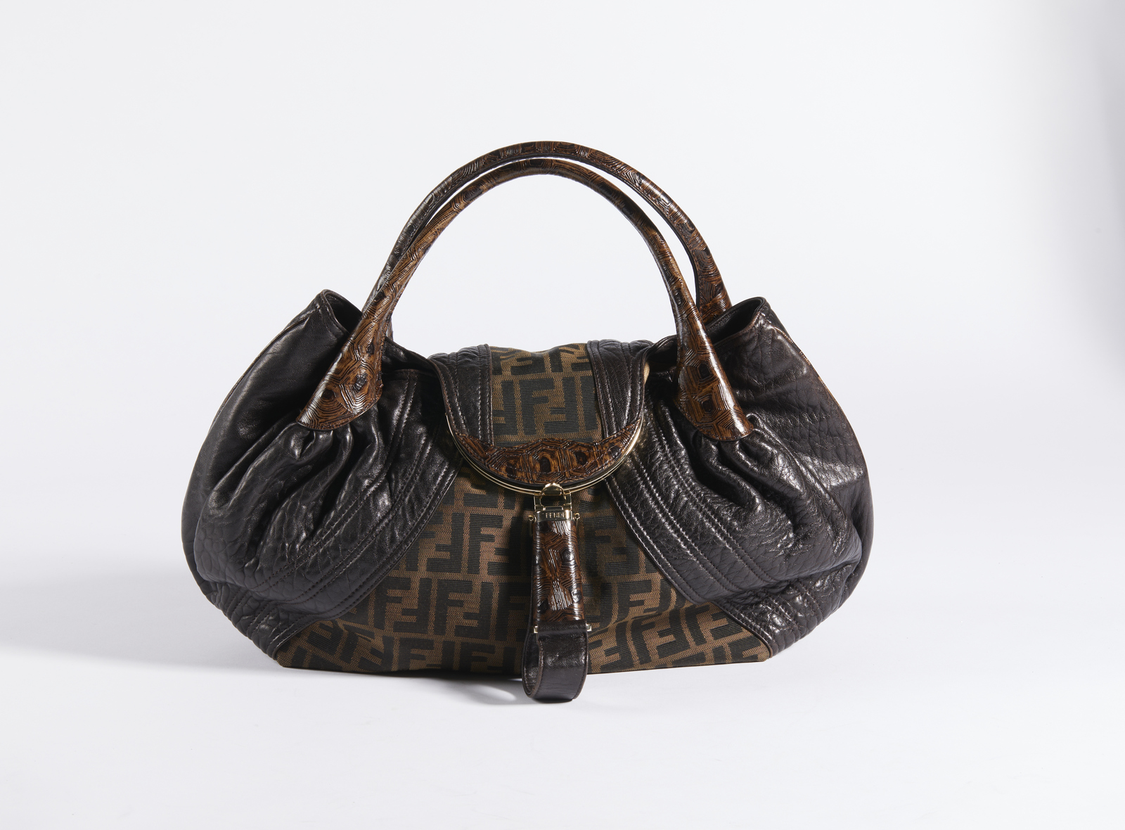 FENDI Borsa Spy in Tela e pelle. Tessuto e pelle. Cm 30,00 x 22,00 x 18,00. Borsa Spy in pelle e tessuto marrone.