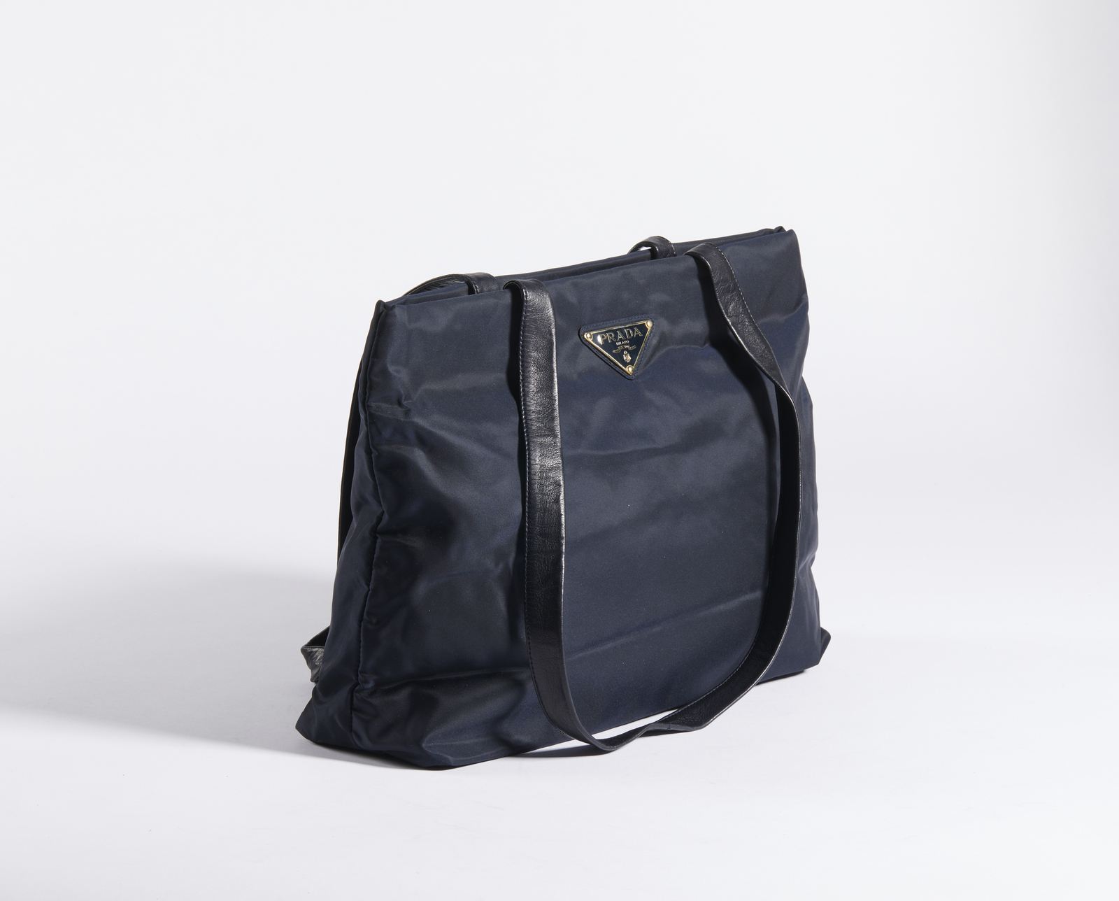 PRADA MILANO Borsa in tessuto tecnico blu. Tessuto. Cm 37,50 x 26,00 x 12,00. Borsa in tessuto tecnico con logo Prada sul fronte. Chiusura a calamita.