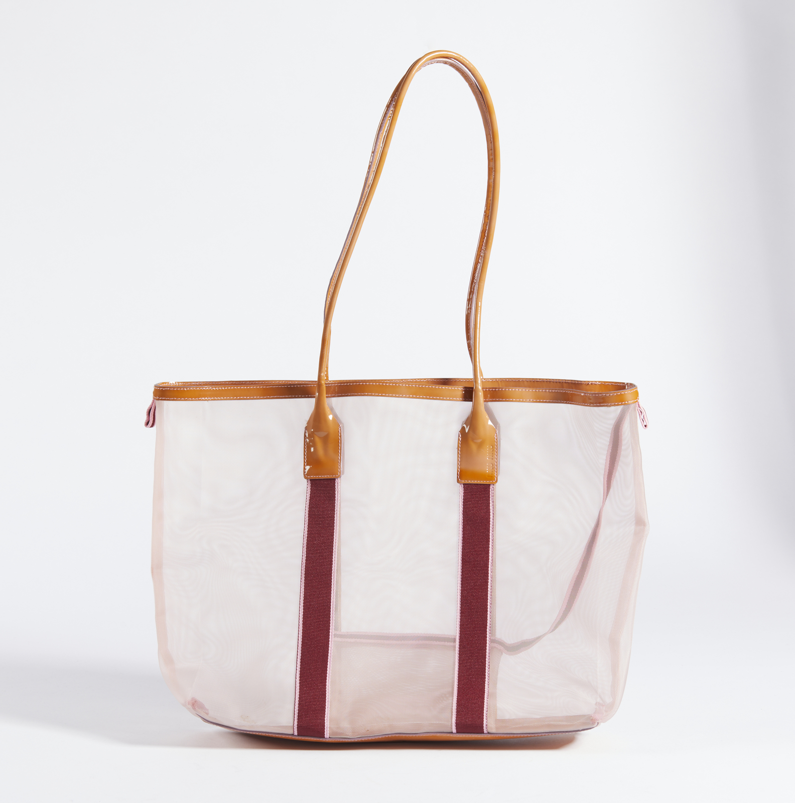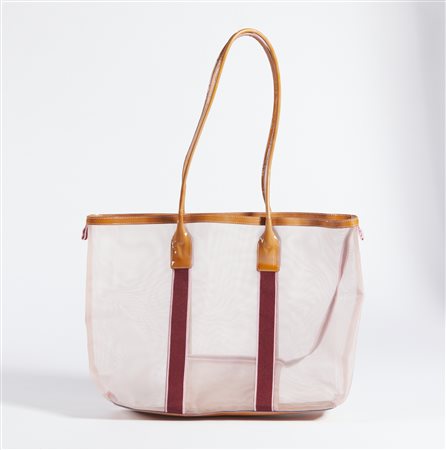 MIU MIU - Borsa rosa in tessuto trasparente.