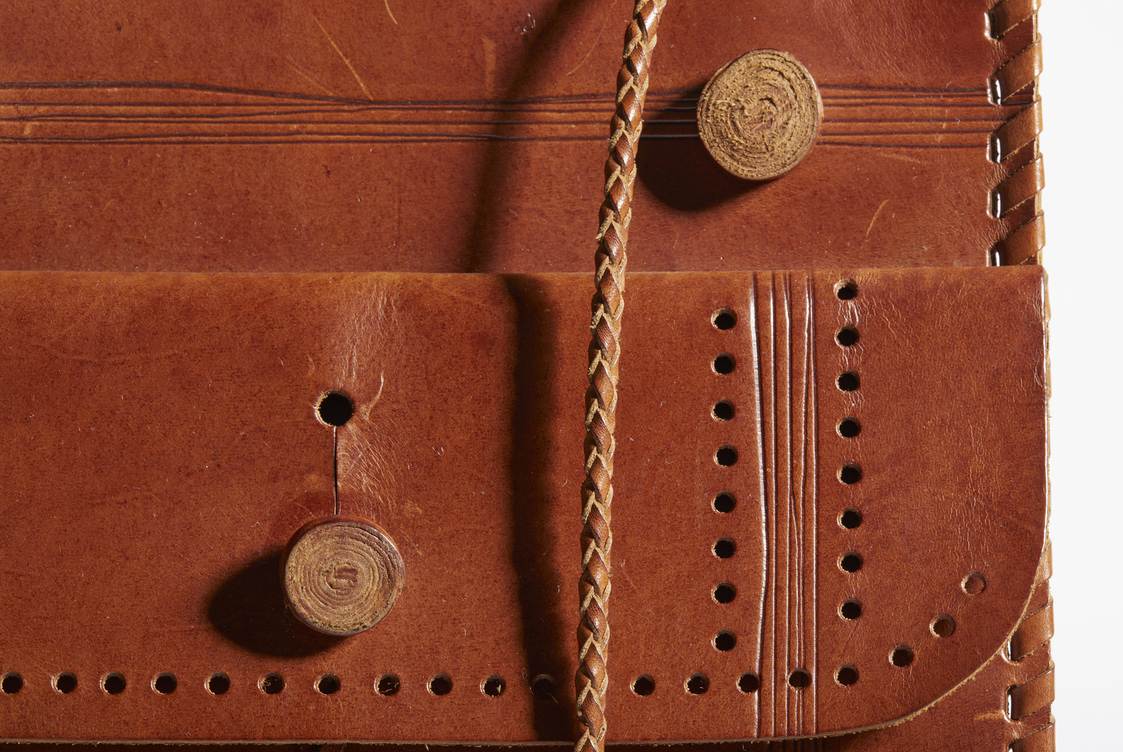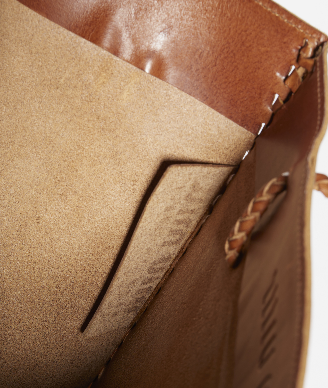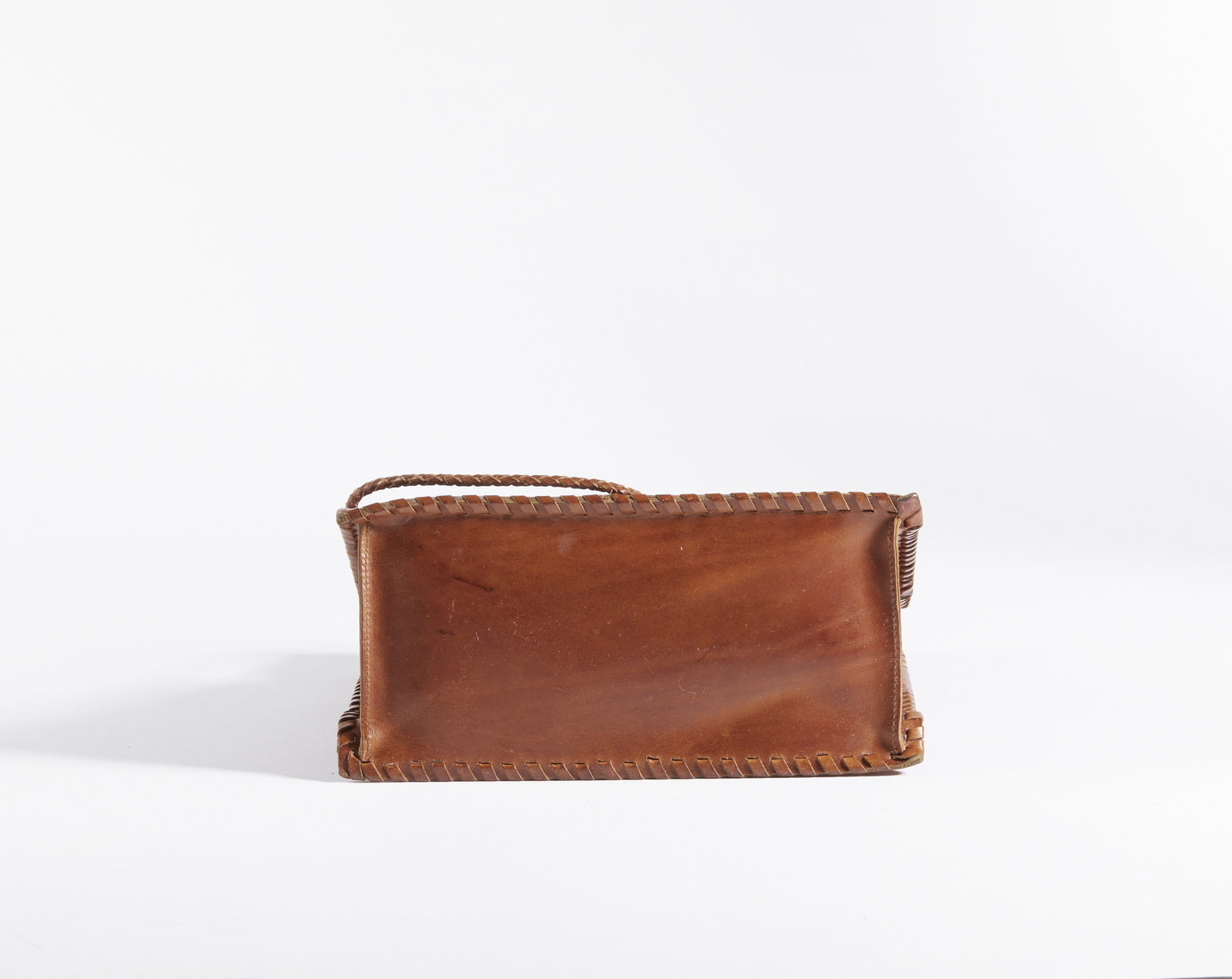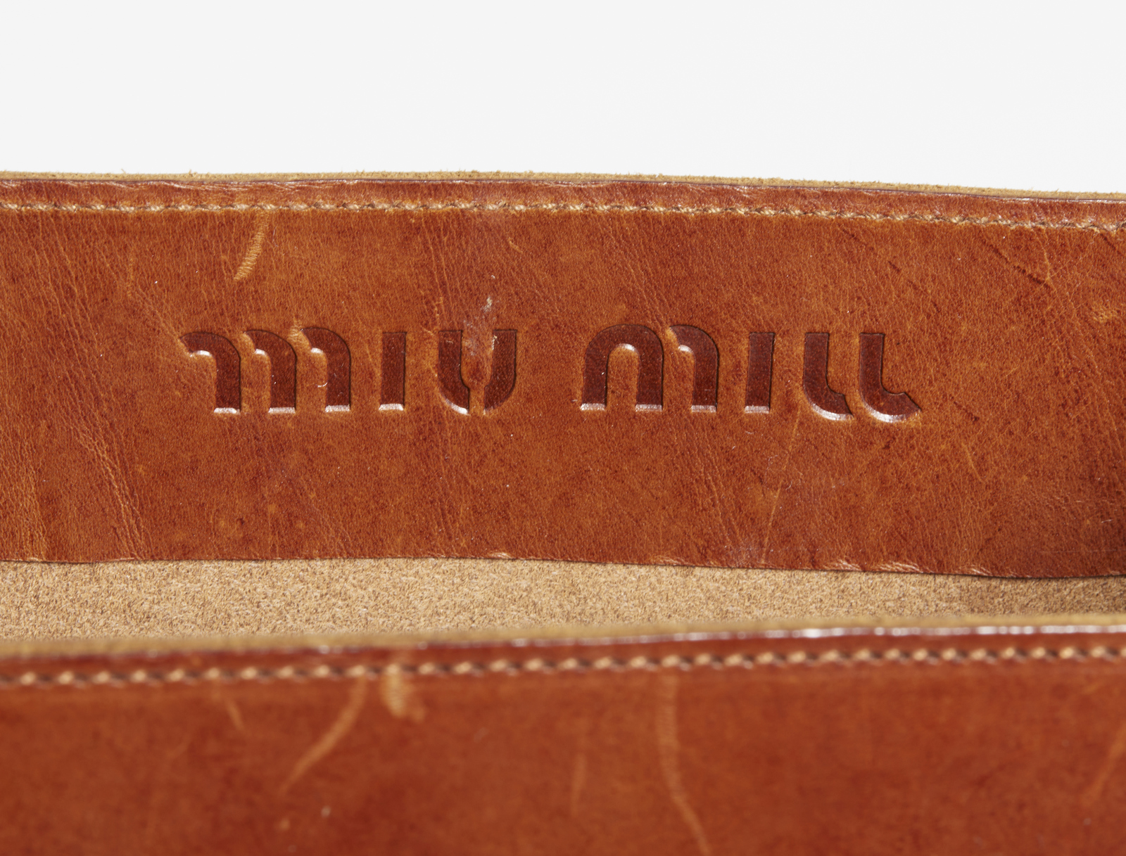 MIU MIU Borsa color cuoio. Tessuto. Cm 28,00 x 32,00 x 13,00. Borsa color cuoio a spalla. I bordi hanno una lavorazione ad intreccio. Sul fronte una grande tasca con chiusura a bottone.