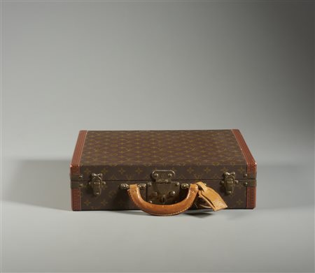 VUITTON LOUISE Valigia. Canvas. Cm 33,00 x 43,50 x 11,50. Prestigioso valigia rigida Louis Vuitton nella classica fantasia monogram, in canvas e dettagli in cuoio stampato e vacchetta. Linea rigida, la metalleria è in sobrio color bronzo brunito. Interni in color crema, logo e codice. Affascinante patina, logo inciso sulla metalleria e dettagli dei profili in cuoio stampato. La valigetta presenta una struttura rigida, solo il manico ed etichetta porta nome in vacchetta a contrasto.