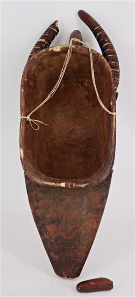 Arte africana. Maschera rituale in legno decorata con terre policrome