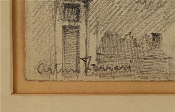 Arturo Ferrari "Angolo della Vecchia Milano" carboncino su carta (cm 11,5x16) f