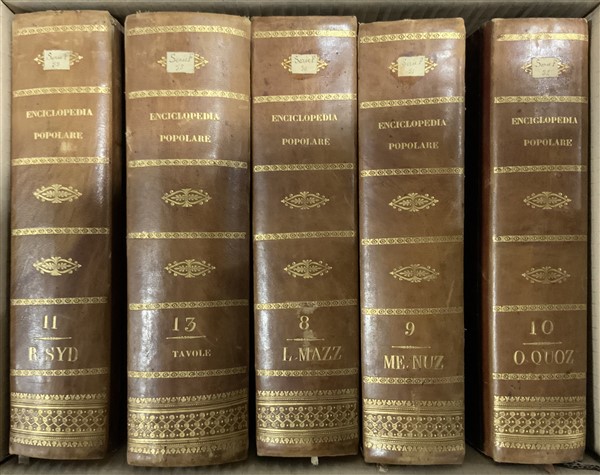 Quattro cartoni contenenti alcuni volumi dell'Enciclopedia popolare e dell'Enci