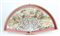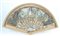 Arte del secolo XIX. Lotto di due ventagli con stecche in madreperla traforata e dorata, uno con inserto in metallo e specchietto sulla guardia, pagine in carta stampata dipinte a tecniche miste con scene galanti. Entro teche in tessuto (difetti e restauri)