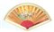 Lotto di due ventagli con stecche in legno: uno con pagina in seta dipinta con rose e scorcio fluviale, l'altro con pagina in carta stampata raffigurante Venere e Cupido. Entro teche in tessuto (difetti)