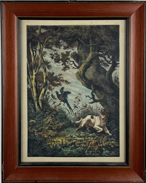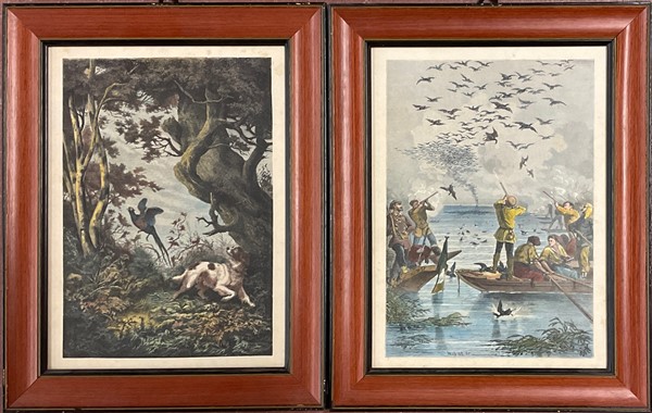 Lotto composto da 2 stampe a colori con soggetti di caccia