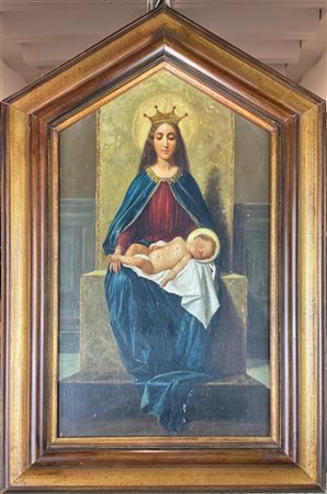 Ignoto della fine del secolo XIX "Madonna in trono con Bambino" olio su compe