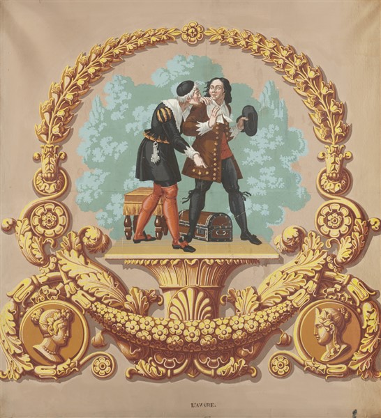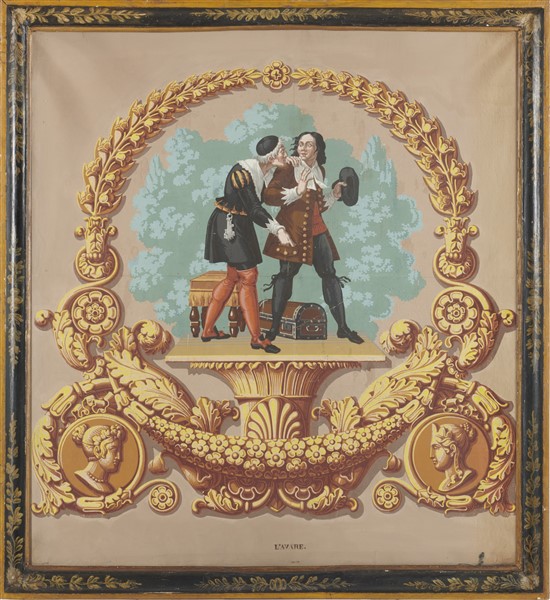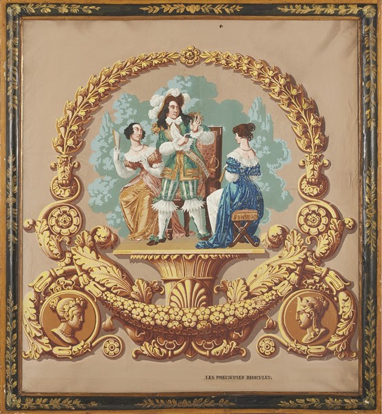 French School of the 19th century. Group of five papier peint paintings depicting subjects from the works of Molière (cm 80x70) In frames (defects)
