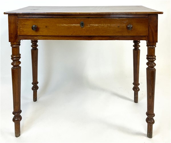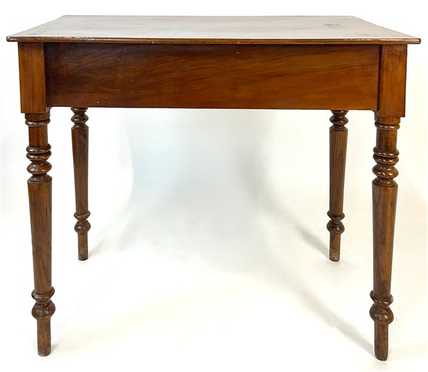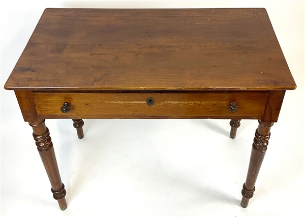 Tavolino da parete in noce con fronte ad un cassetto e gambe tornite. Secolo XI