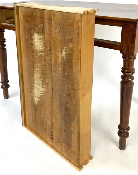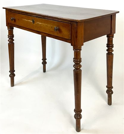 Tavolino da parete in noce con fronte ad un cassetto e gambe tornite. Secolo XIX (cm 100x78x53) (difetti)
