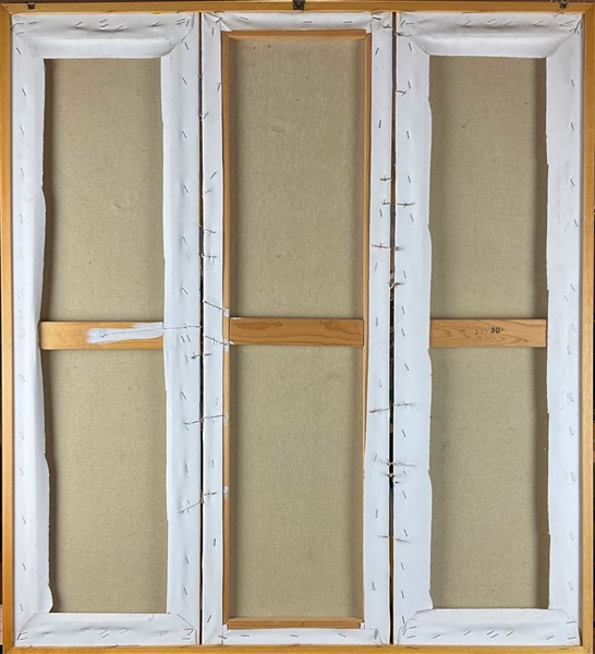 Ignoto "Senza titolo" acrilico su tre tele montate in un unica cornice (misura tot cm 99,5x90)