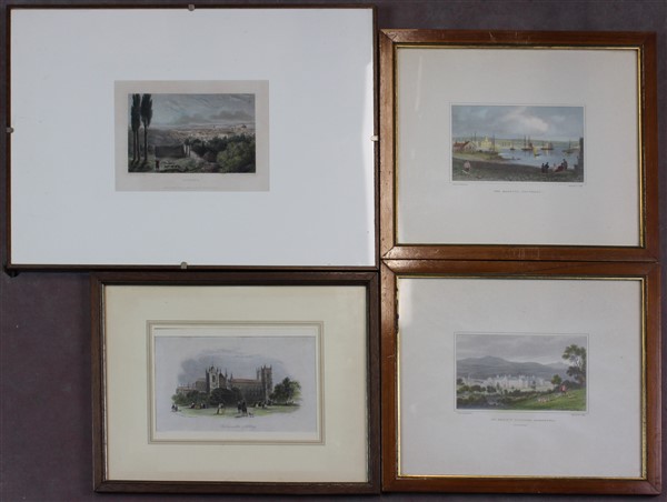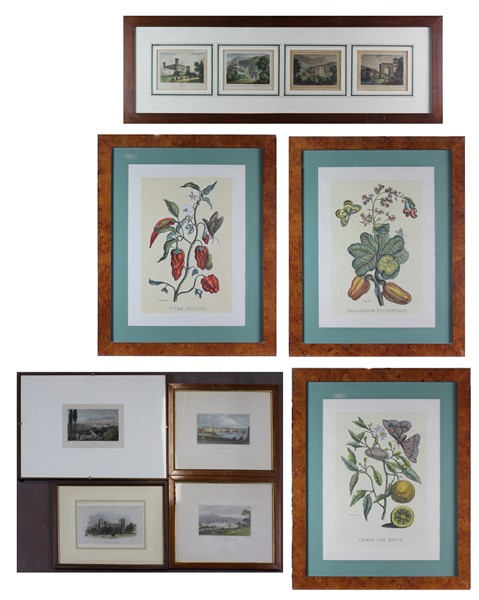 Cartone contenente diverse stampe di epoche e misure differenti in cornice (difetti)