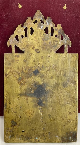 Lotto 722 | Arte russa, secolo XIX. Icona da viaggio in metallo con cimasa traforata raffig
