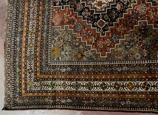 Tappeto Shiraz, Persia, inizio secolo XX. Decoro con medaglioni romboidali conc