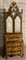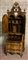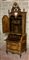 Trumeau in legno lastronato, filettato e intarsiato a volute in legni vari. Parte inferiore a fronte mosso a due cassetti, calatoia celante vani e segreto. Parte superiore a due ante a specchi incisi a figure, cimasa a frontone spezzato sormontata da vaso di fiori tra pinnacoli (cm 93x237x55) (difetti)