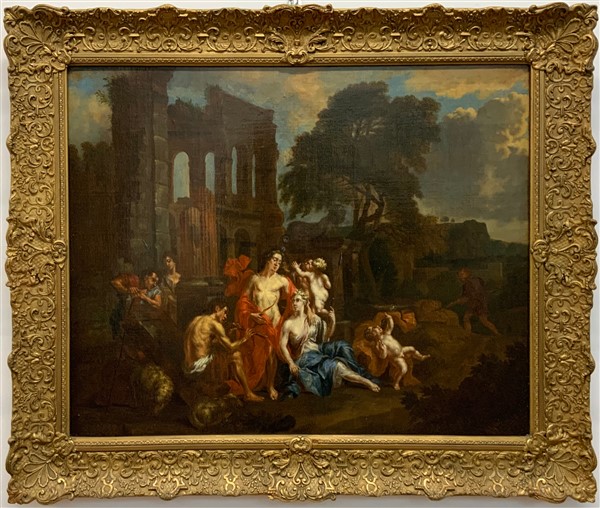 Ignoto Antico dipinto raffigurante "Apollo e Artemide" olio su tela (cm 65,5x8